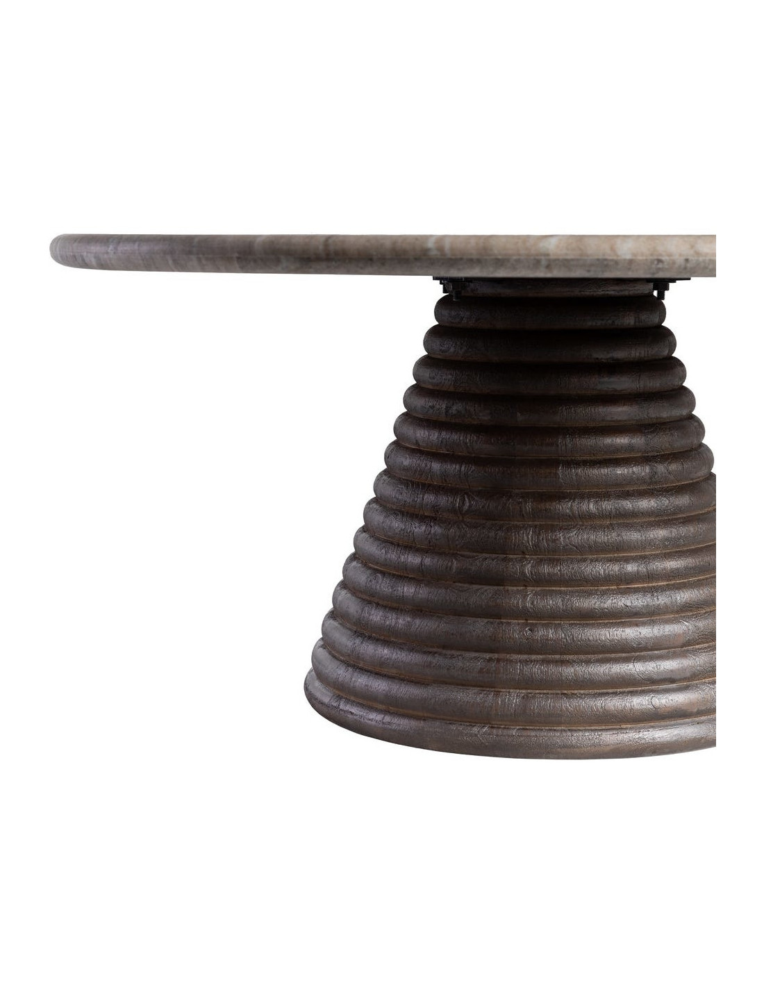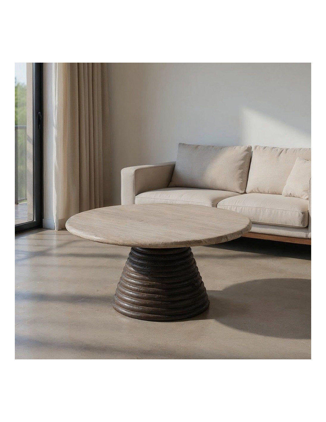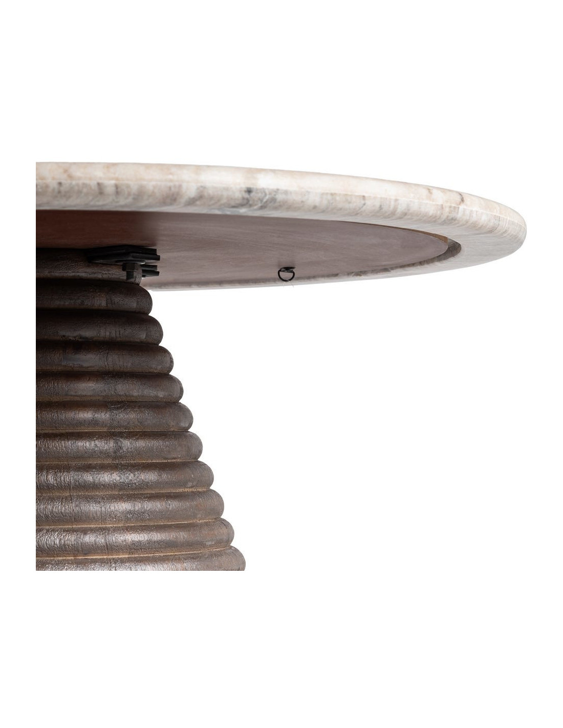 Grande Table basse moderne chic Ronde en Marbre Blanc Bois de manguier Marron Cieza - 2