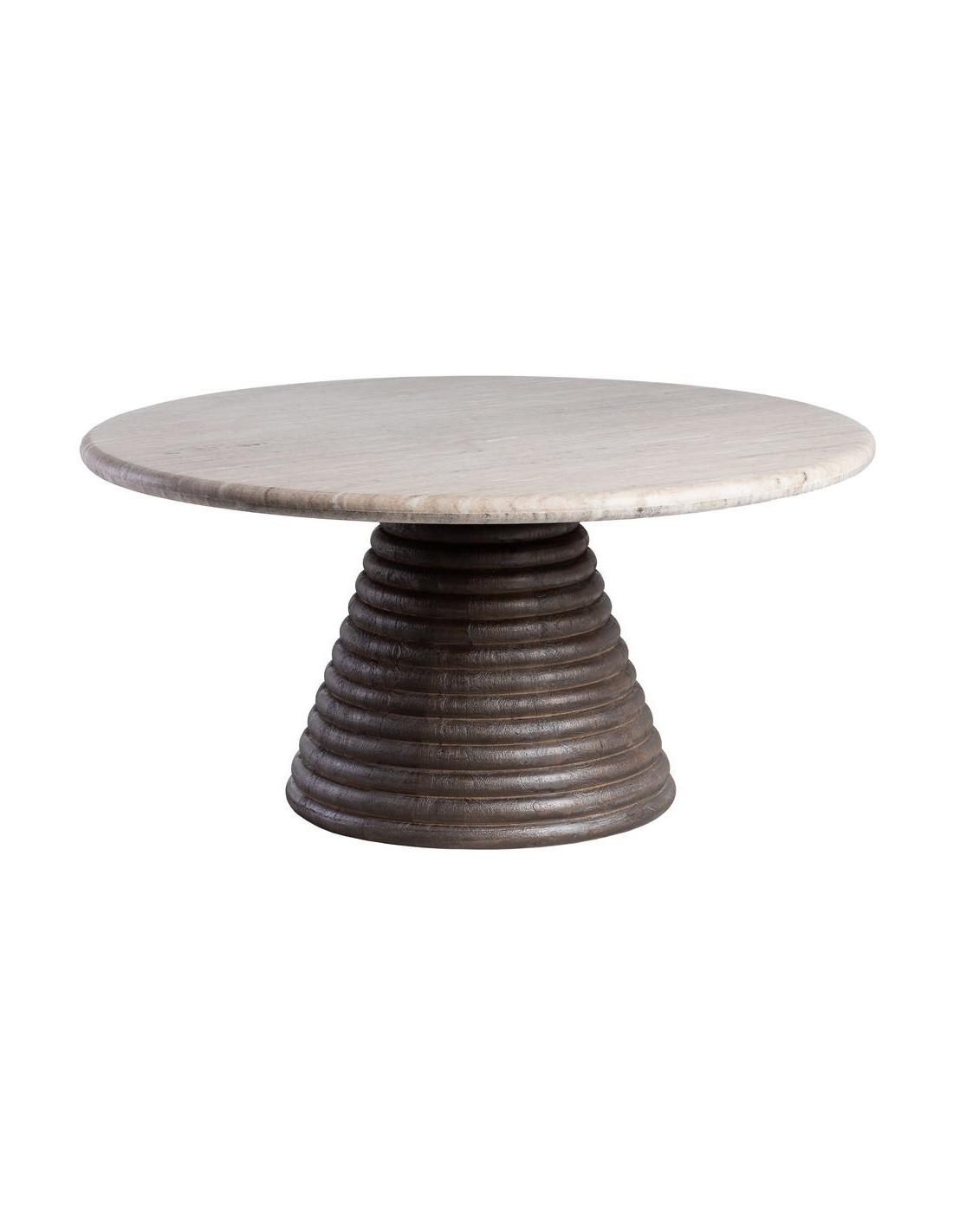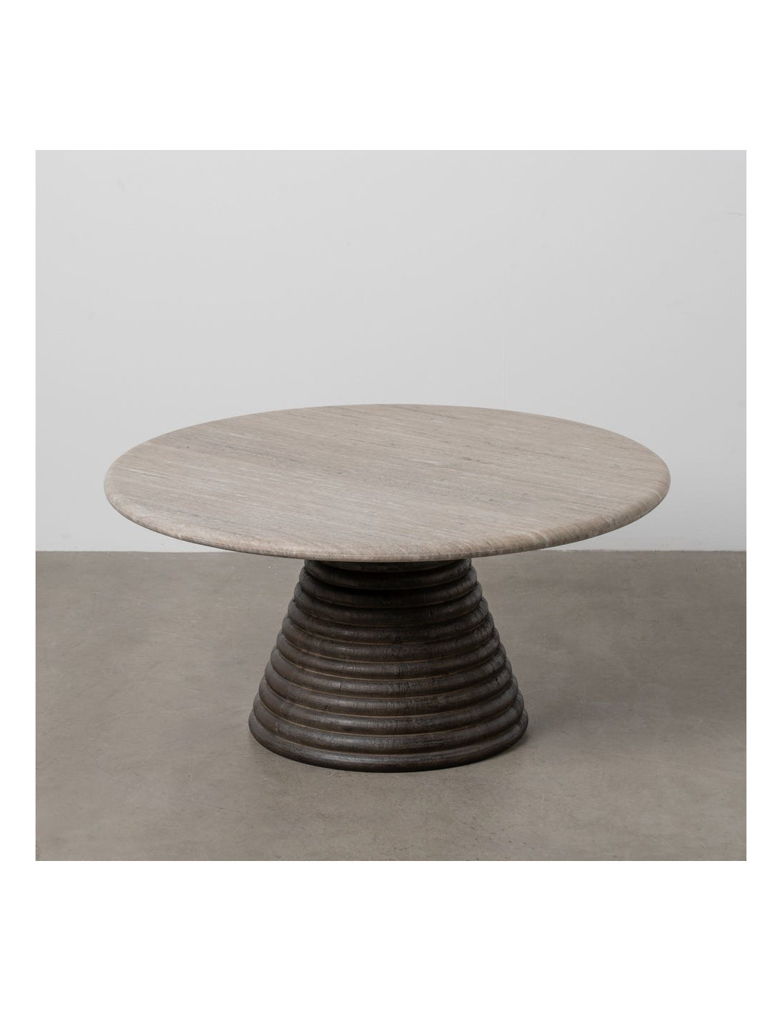 Grande Table basse moderne chic Ronde en Marbre Blanc Bois de manguier Marron Cieza - 1