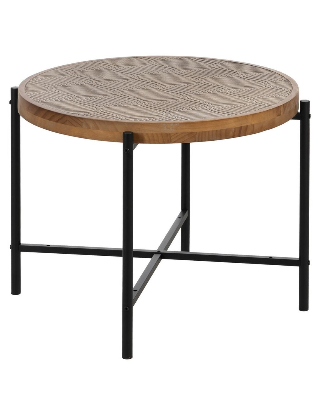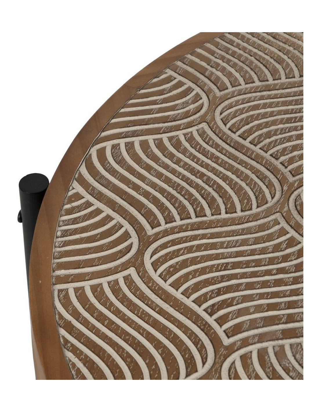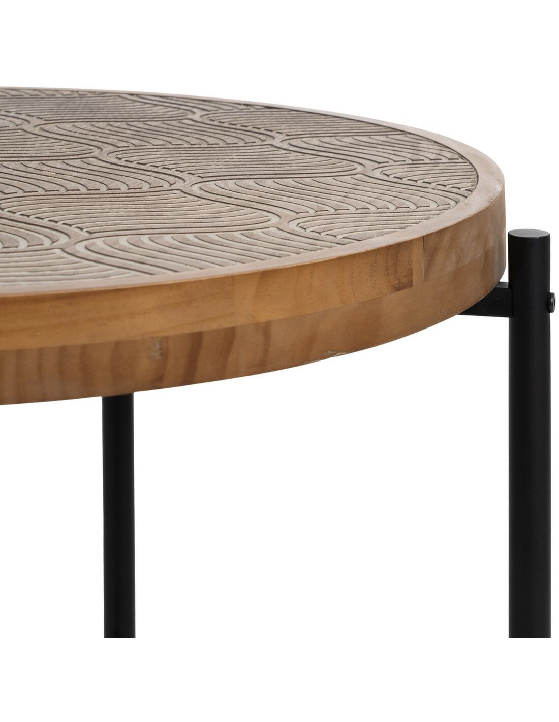Grande Table d'appoint indienne Ronde en Bois de pin Naturel Sculpté Métal Noir Gata - 1
