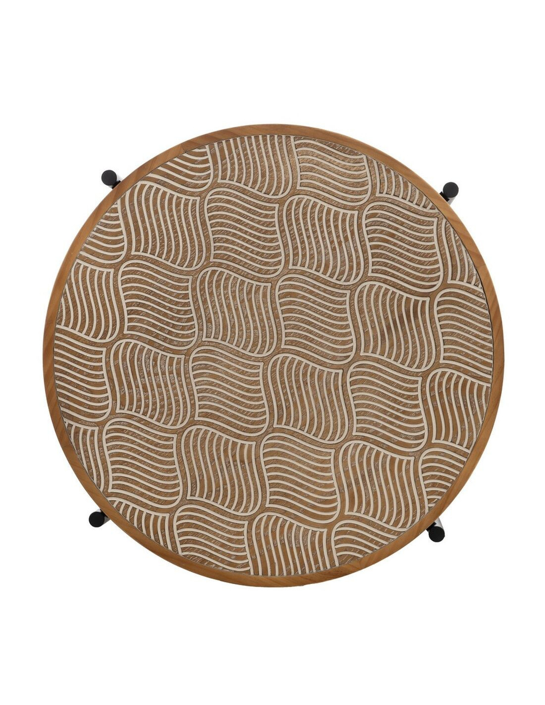 Grande Table d'appoint indienne Ronde en Bois de pin Naturel Sculpté Métal Noir Gata