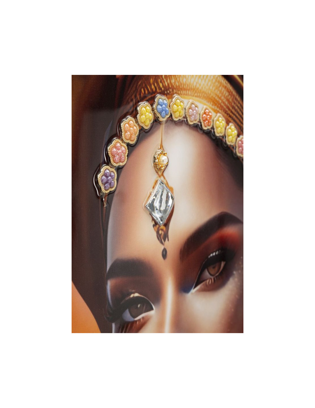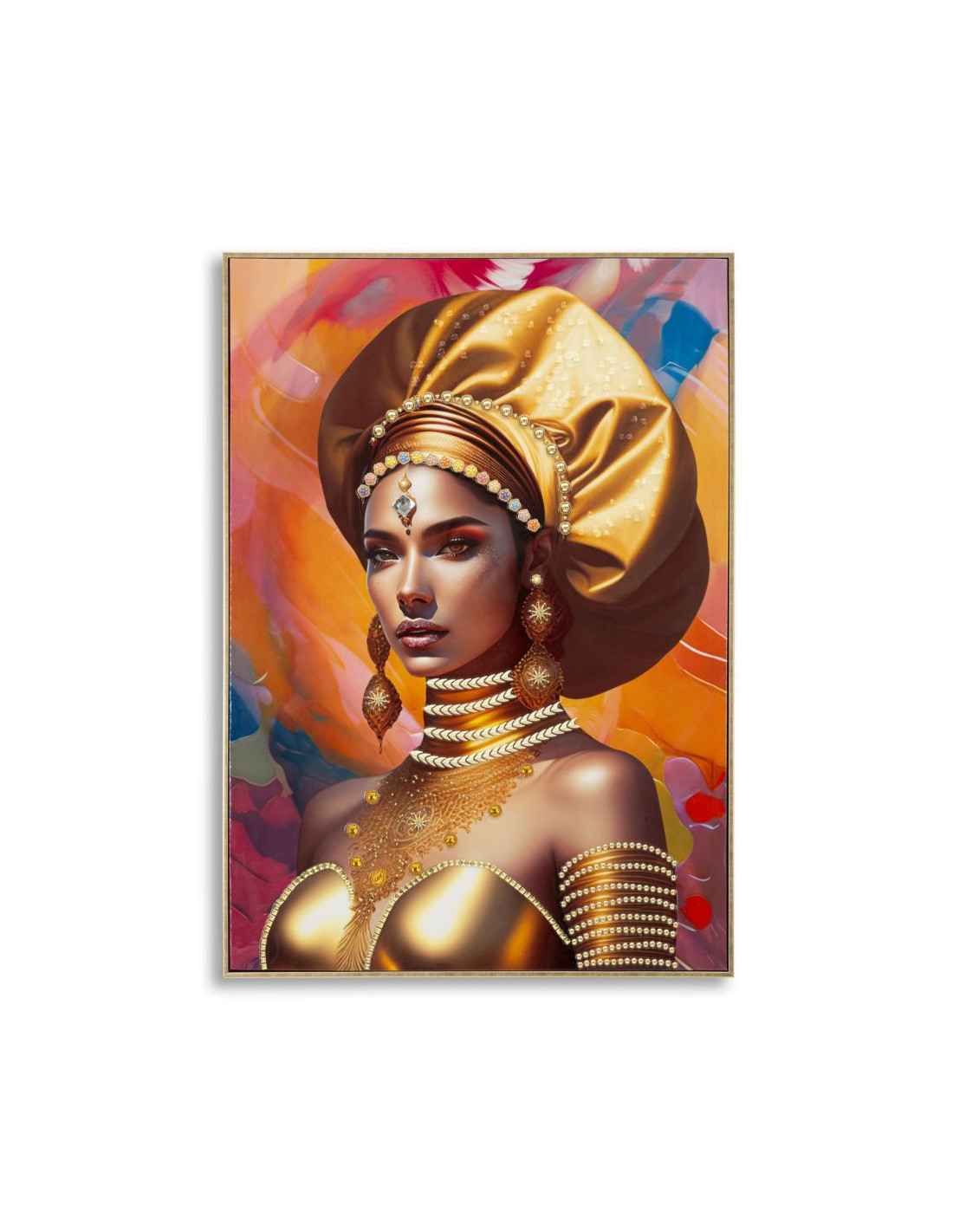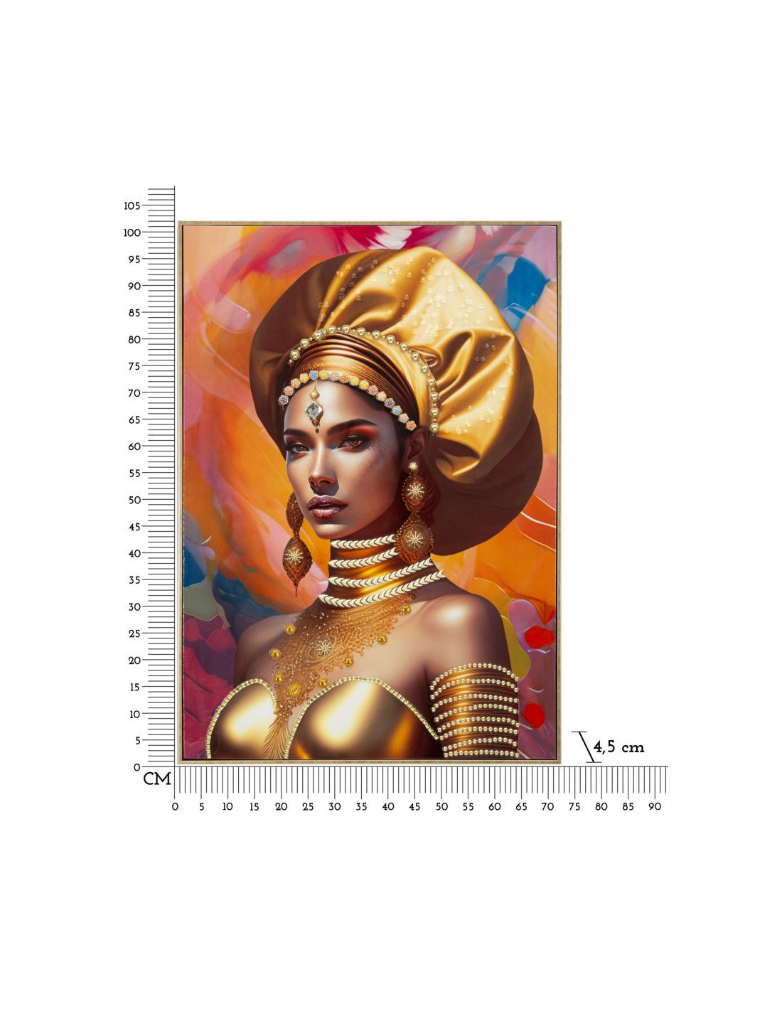 Grande Toile murale imprimée et peinte Femme mystérieuse 72x102 Orange Beige Cadre Bois de sapin Doré Samira