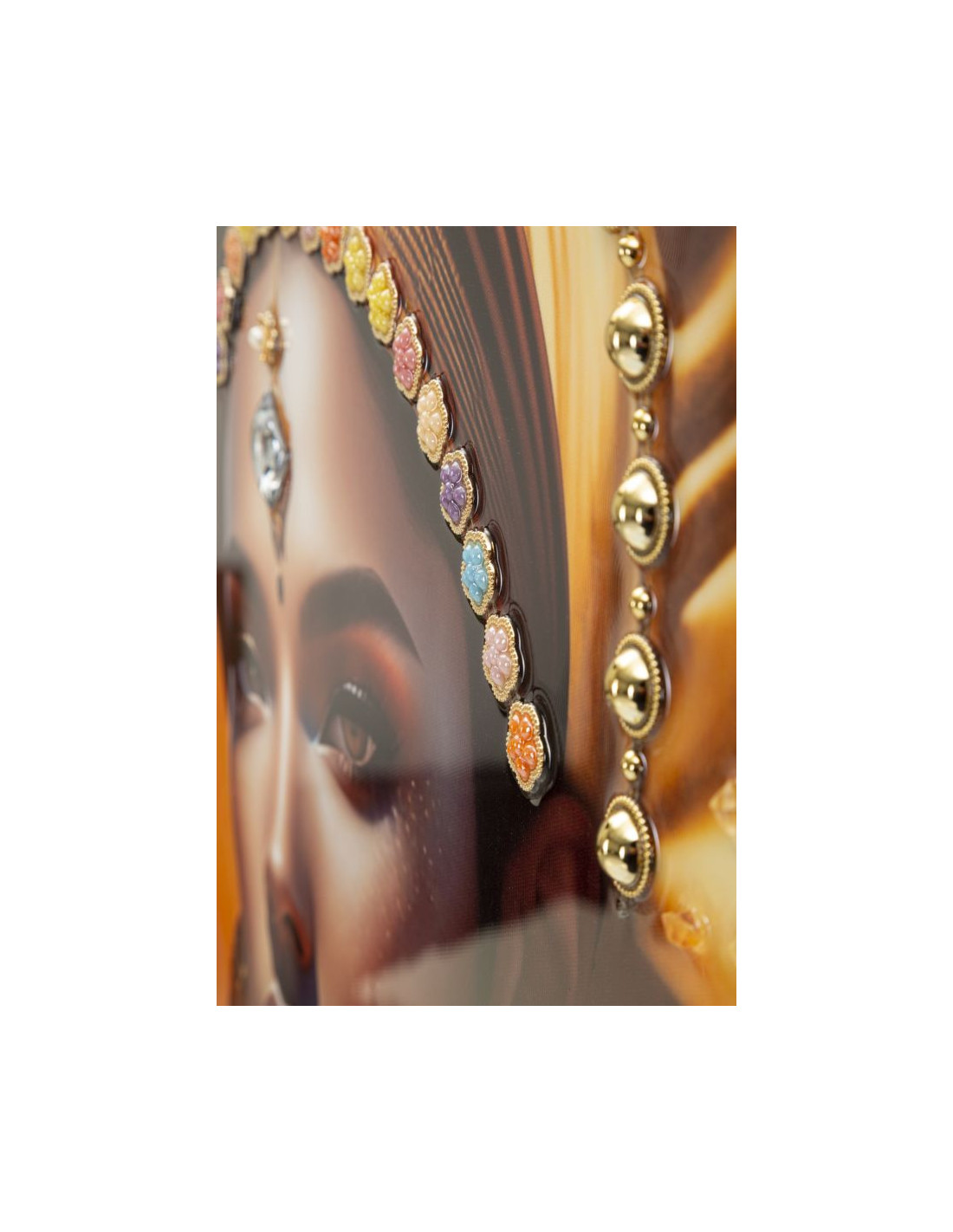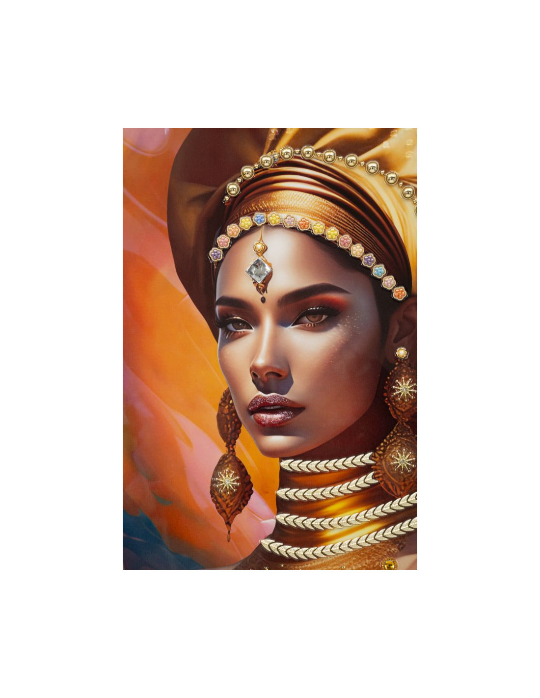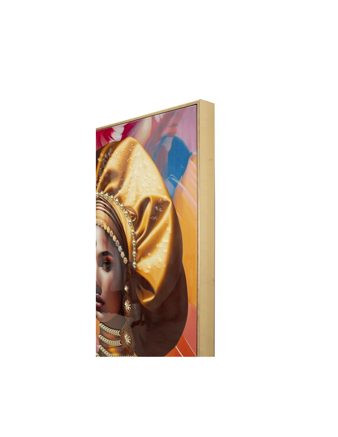 Grande Toile murale imprimée et peinte Femme mystérieuse 72x102 Orange Beige Cadre Bois de sapin Doré Samira