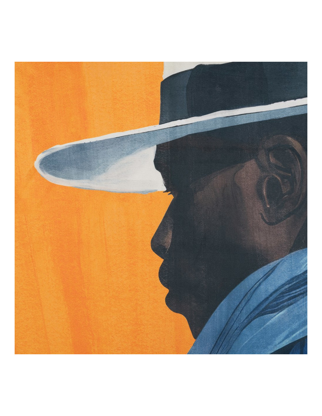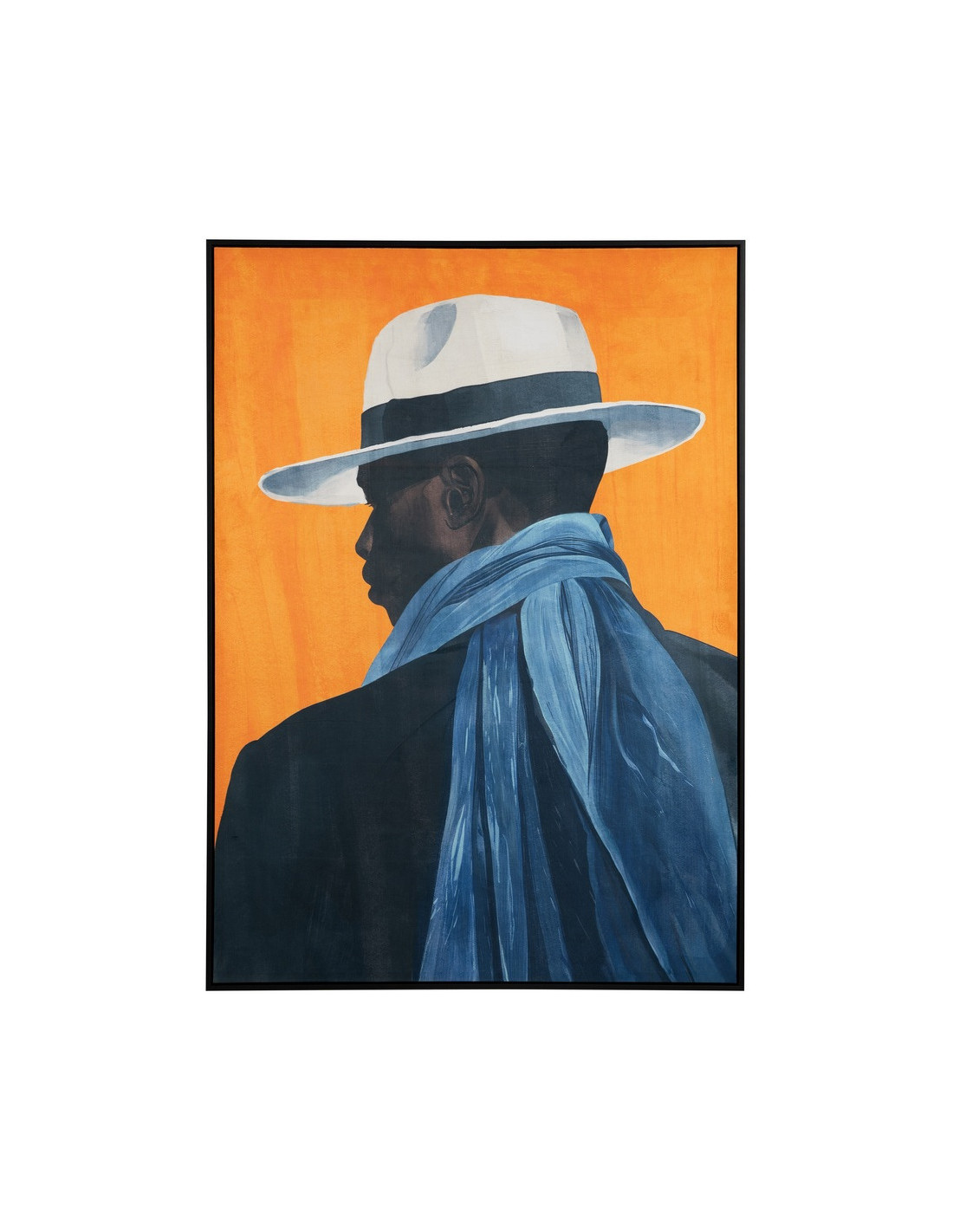 Grande Toile murale imprimée Homme avec chapeau 103x143 Orange Noir Bleu Cadre en PS noir Dorea - 1