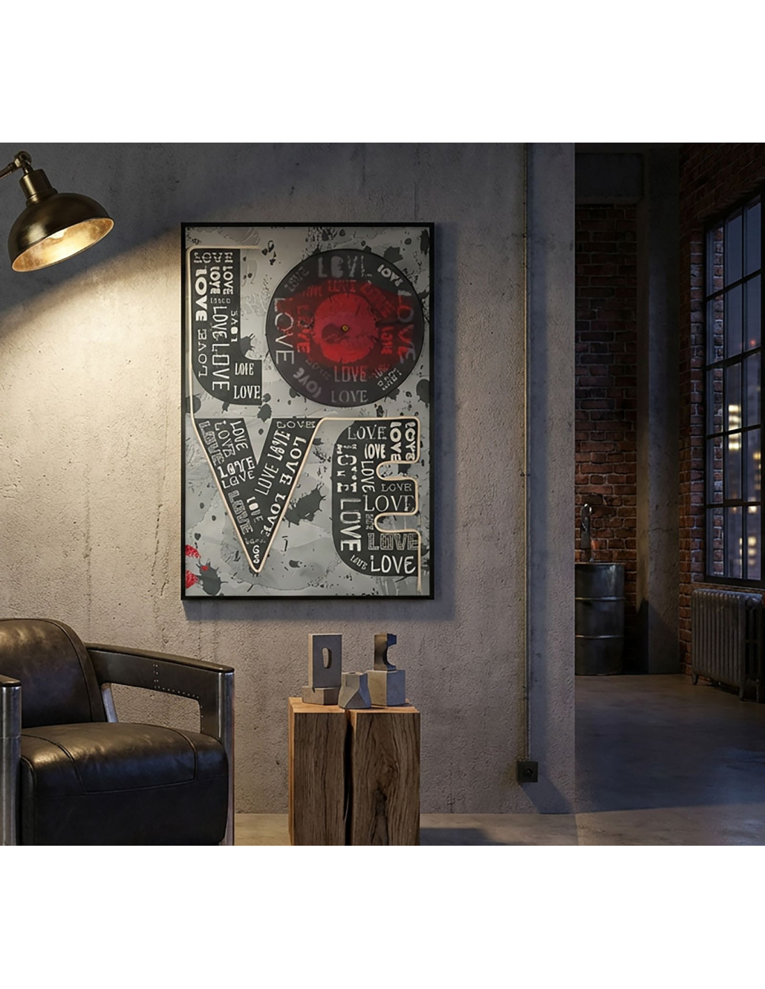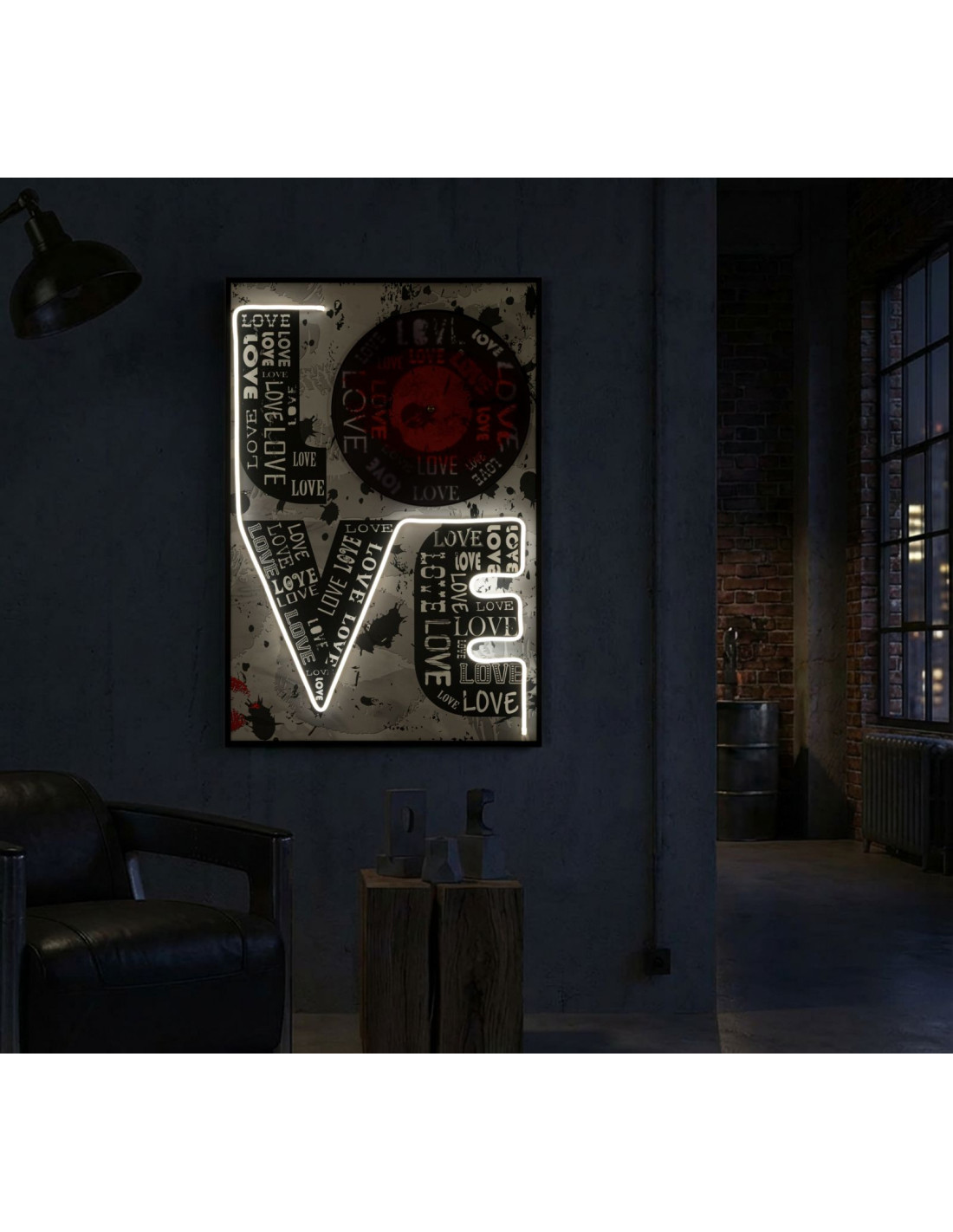 Grande Toile murale imprimée lumineuse 60x90 cm Cadre noir Love
