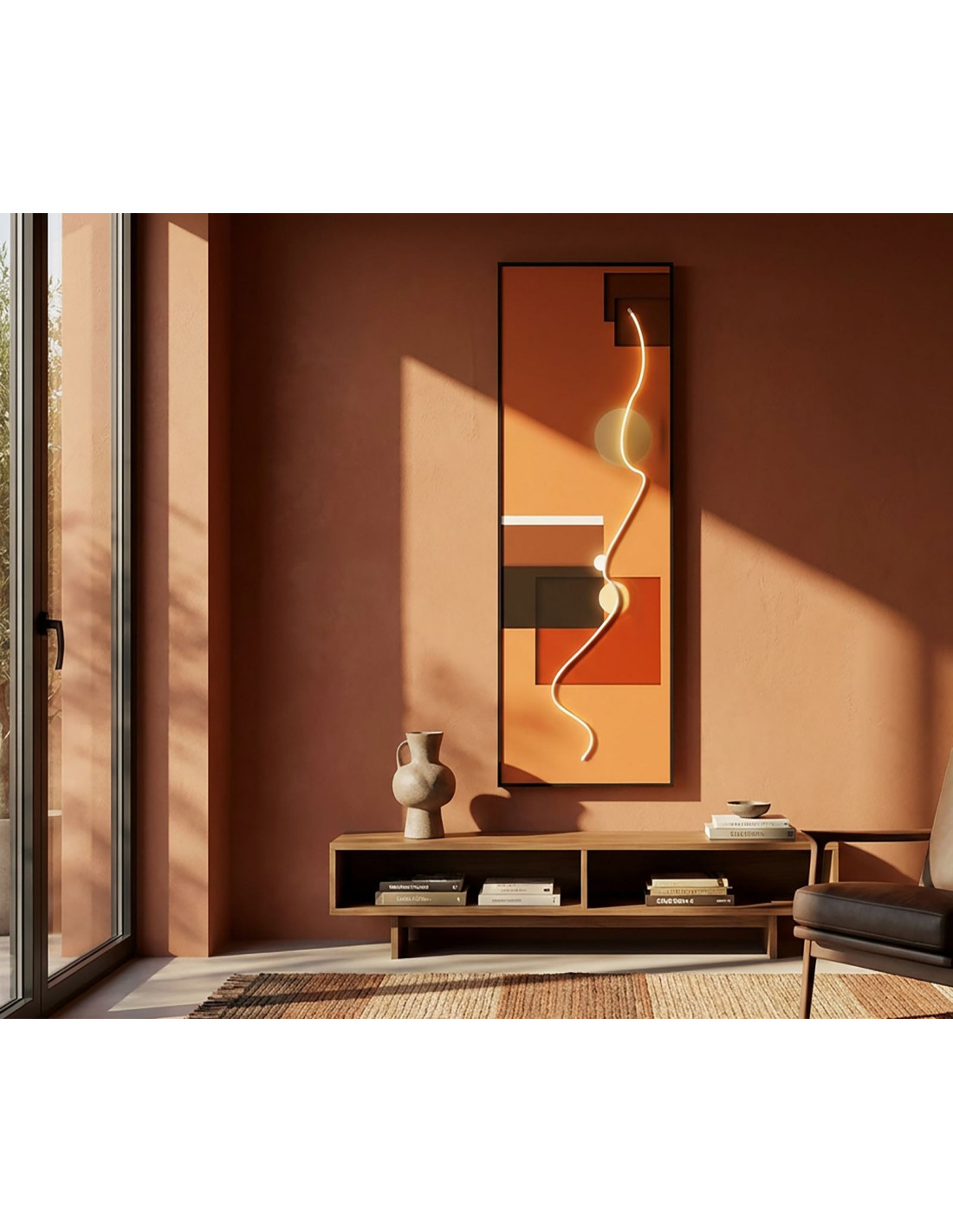 Grande Toile murale lumineuse LED abstraite graphique Cadre noir 150x50 Abstract