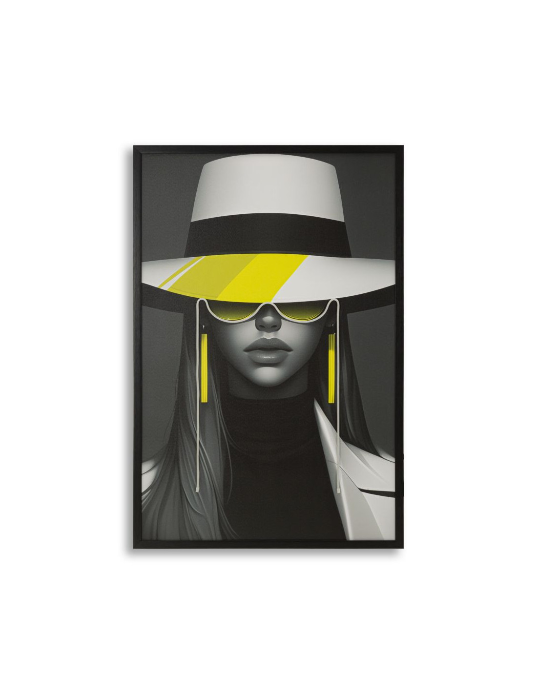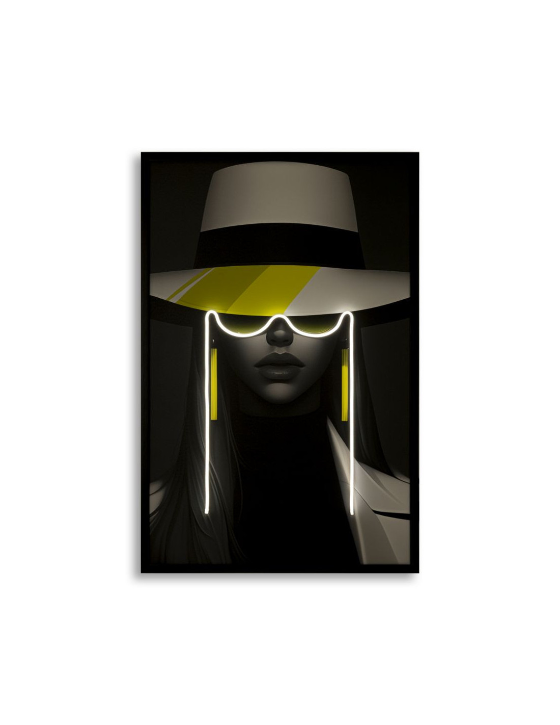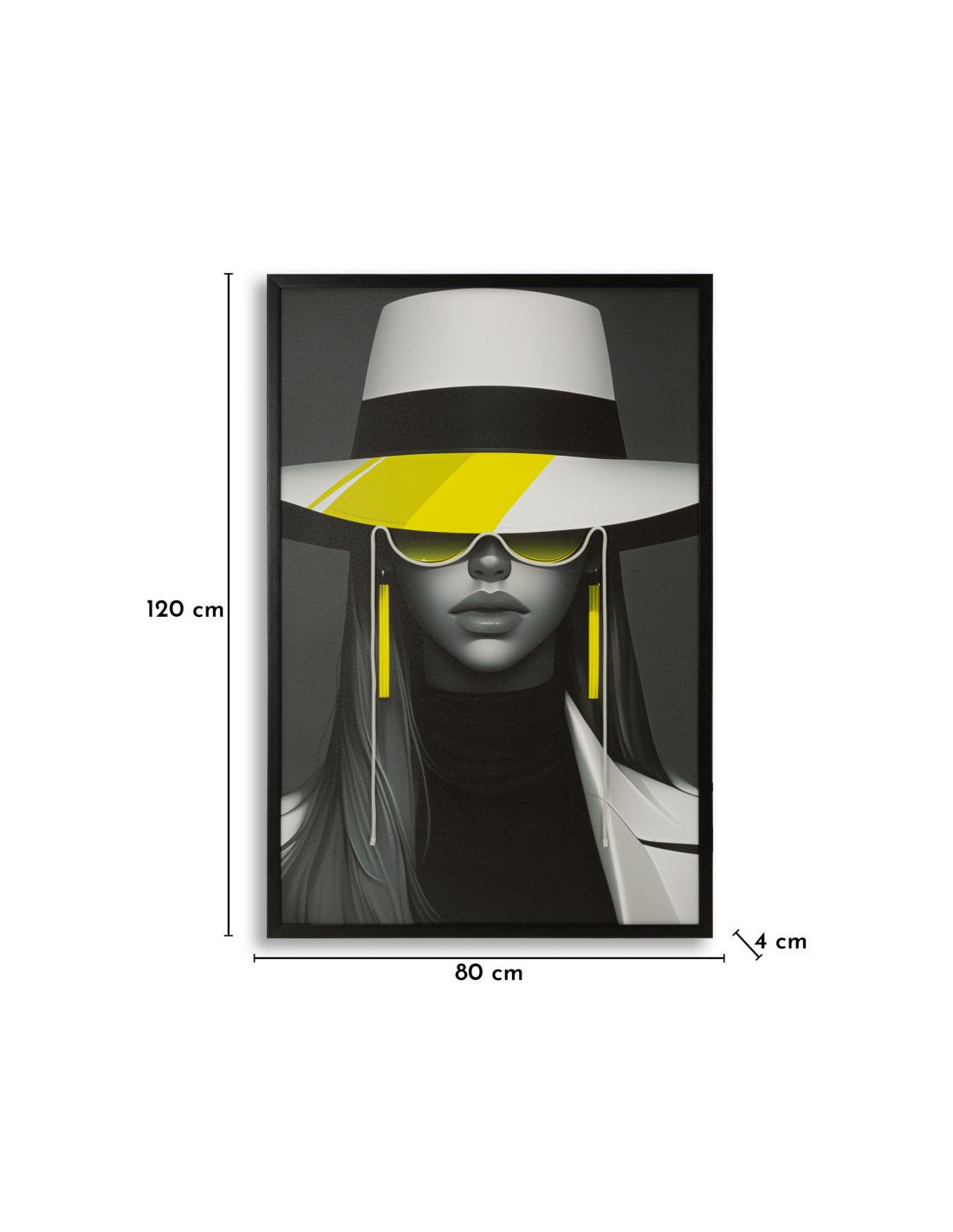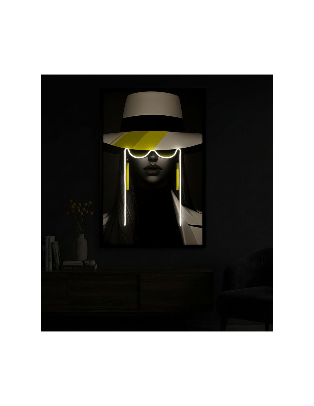 Grande Toile murale lumineuse LED Pop art Femme chic Cadre noir 80x120 Margot