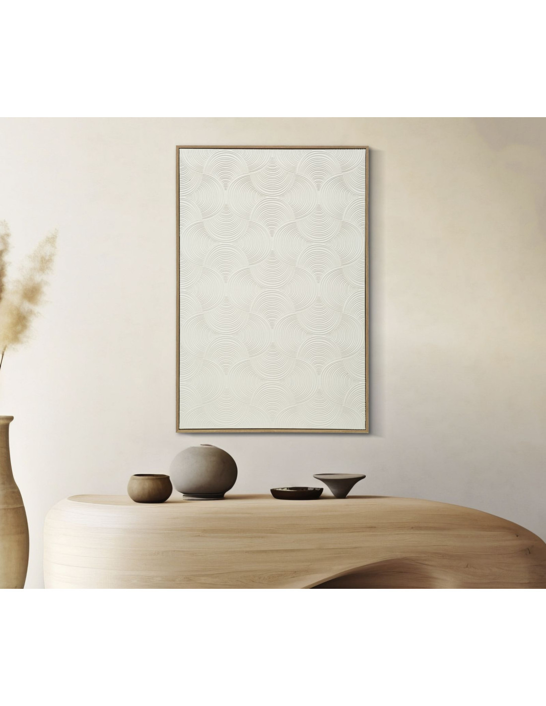 Grande Toile murale peinte abstraite Cadre naturel 80x120 Blanc crème Semplicity B