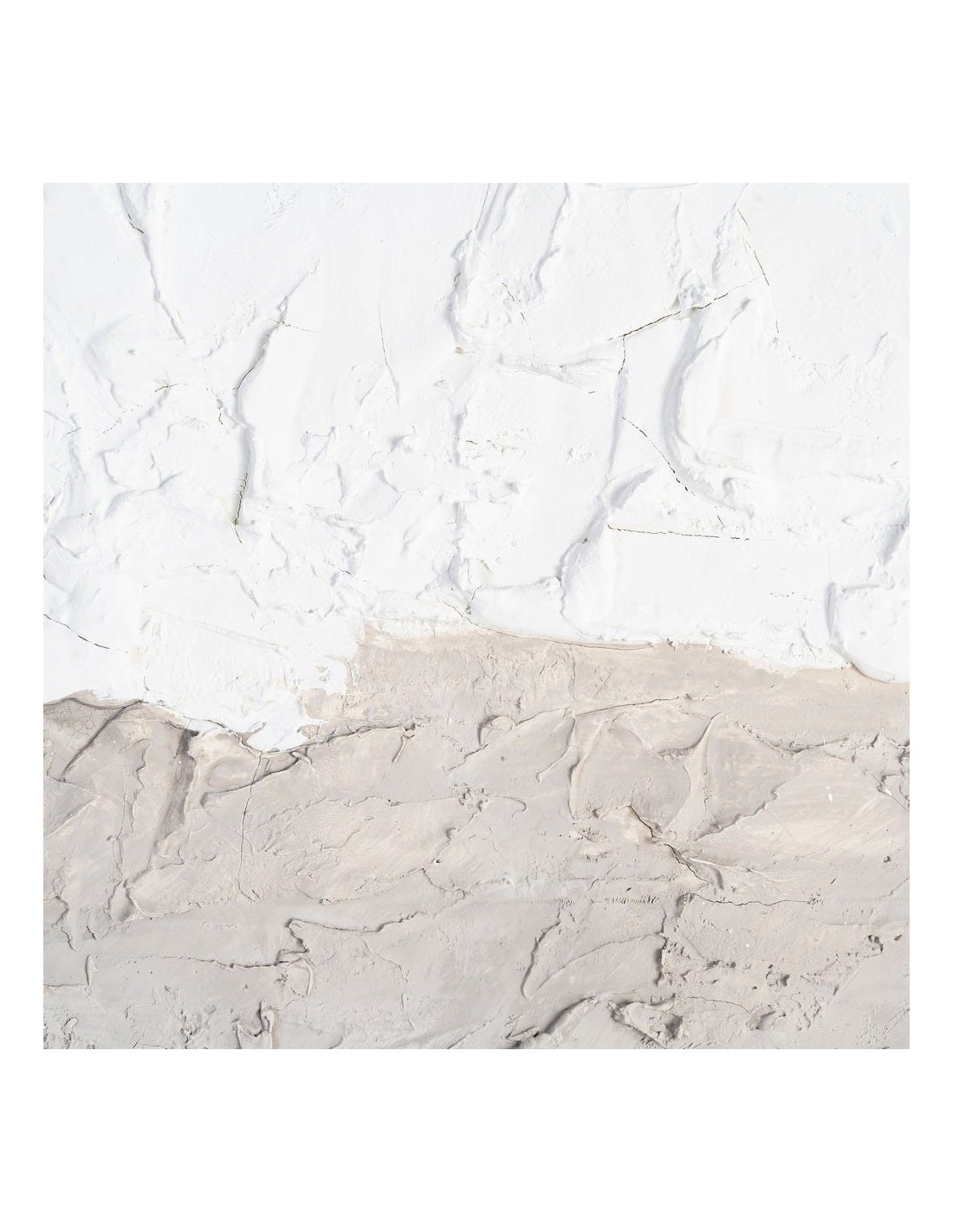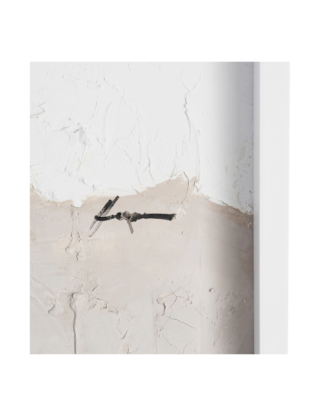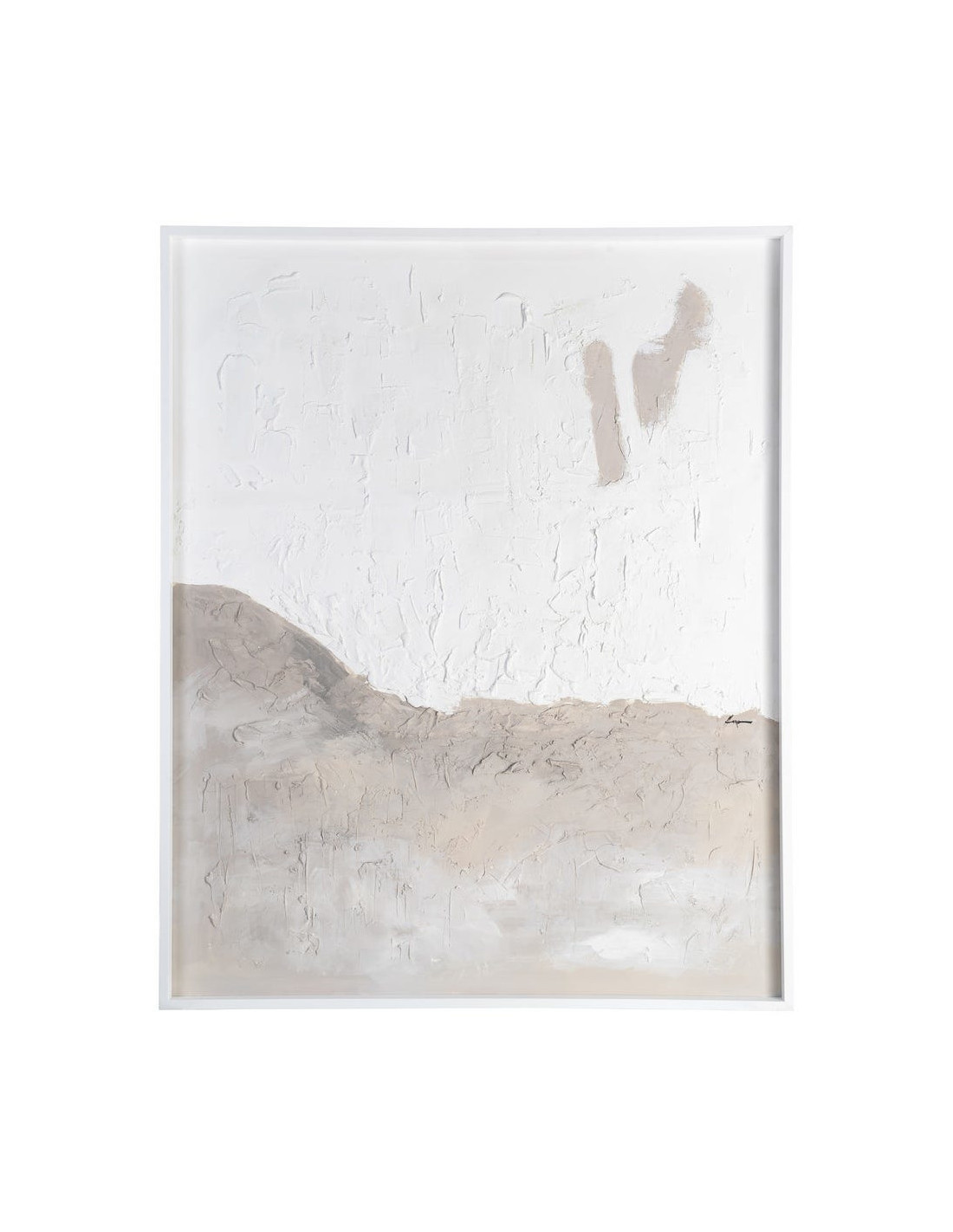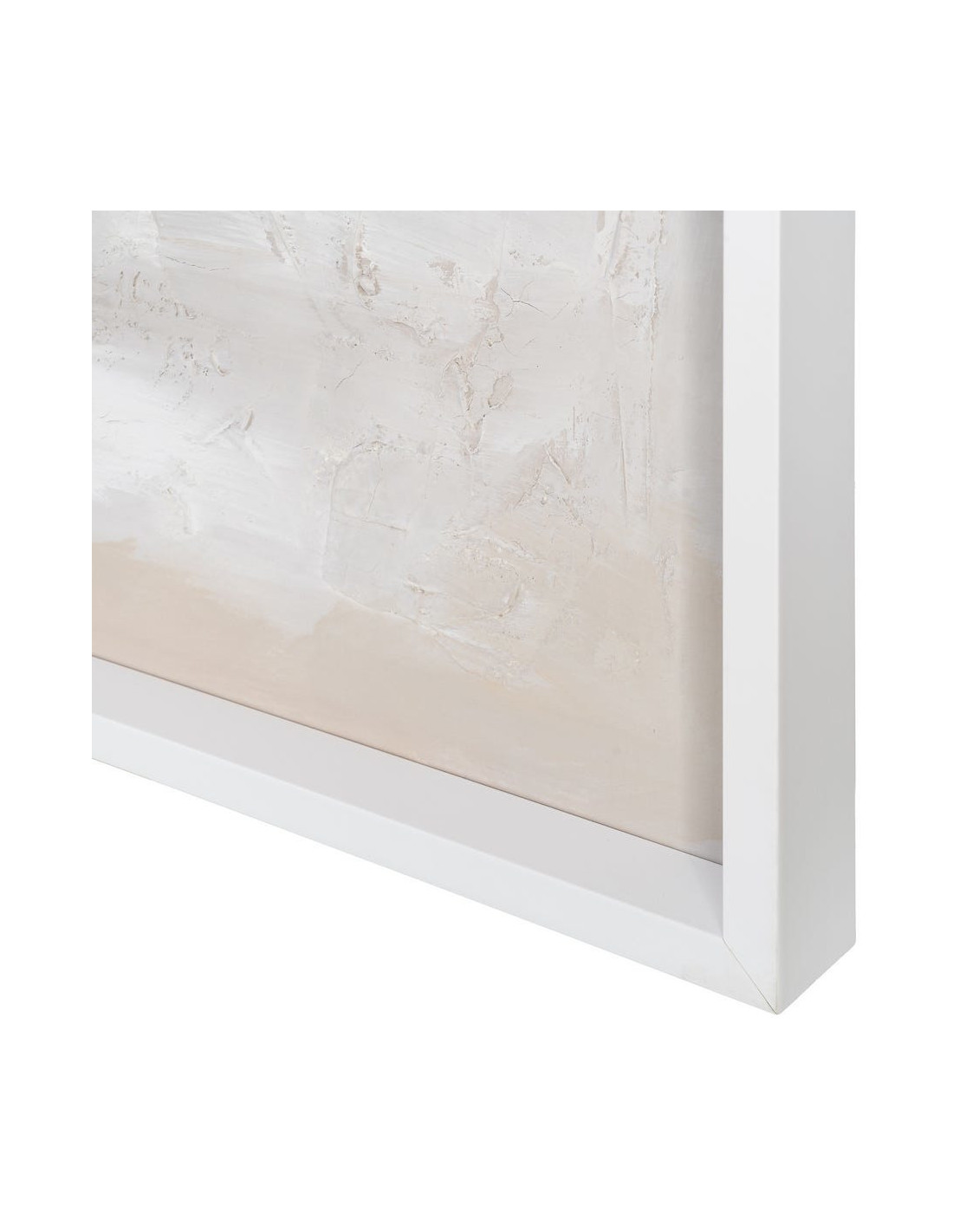 Grande Toile murale peinte abstraite relief Blanc crème Taupe & Grège Cadre Bois d'ayous blanc 130x160 Onvan