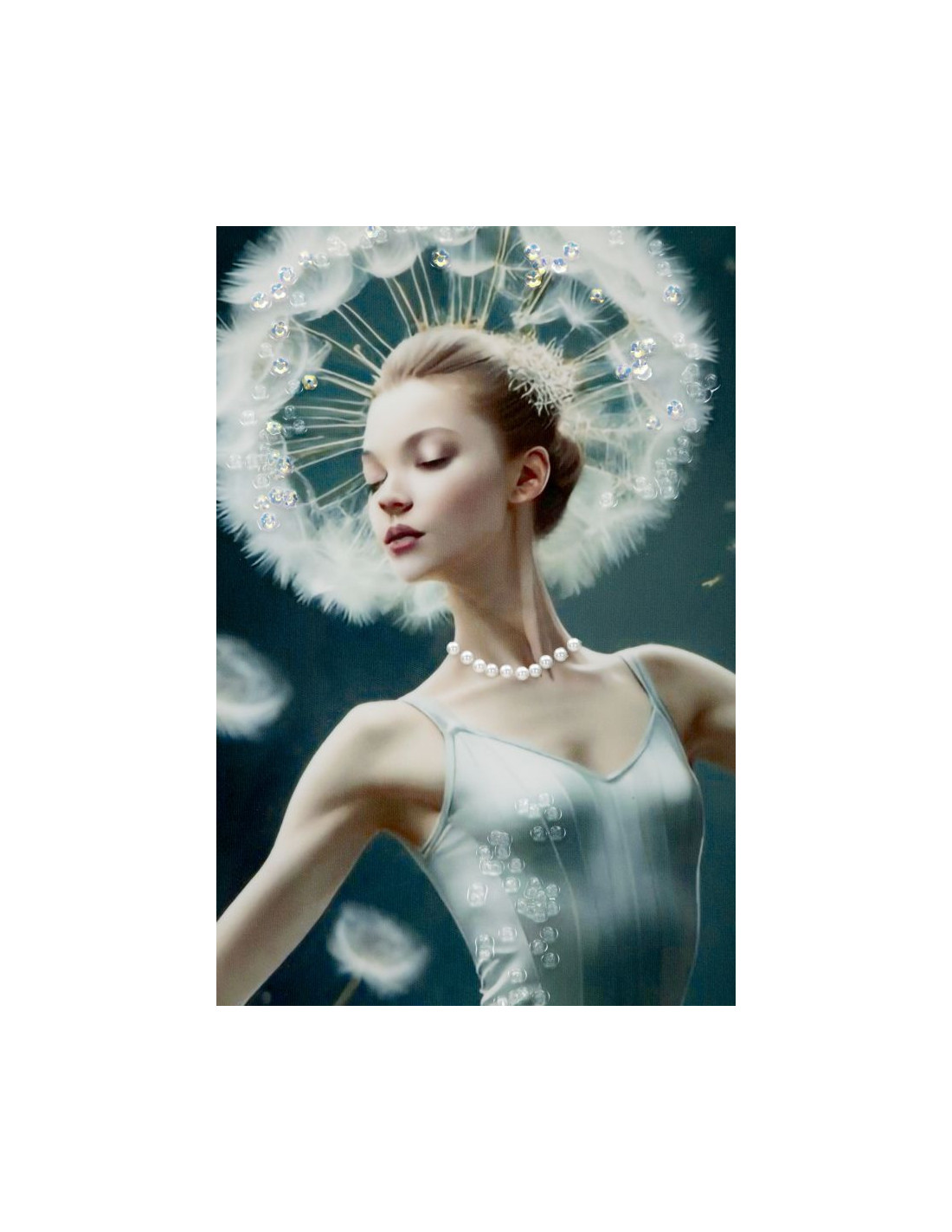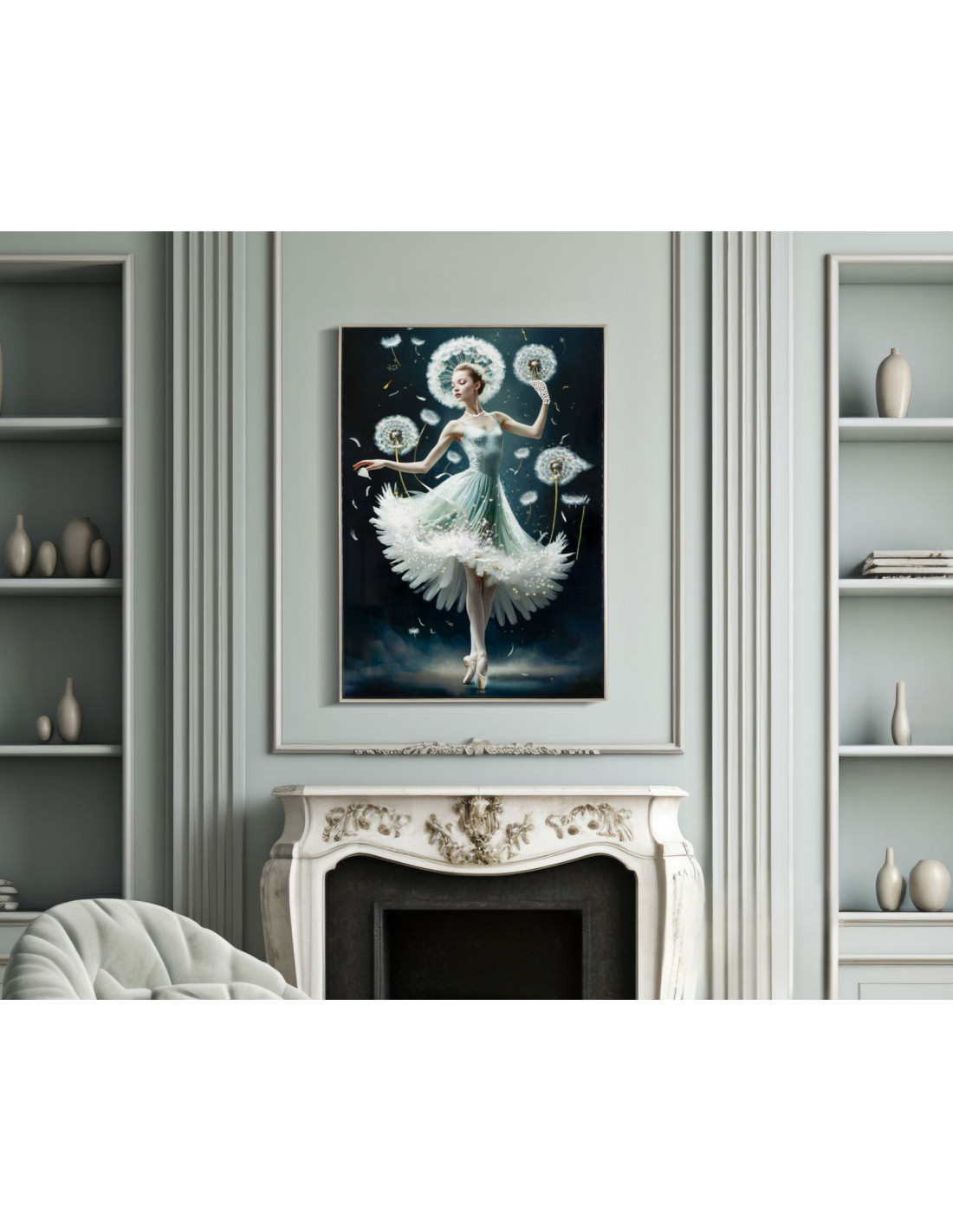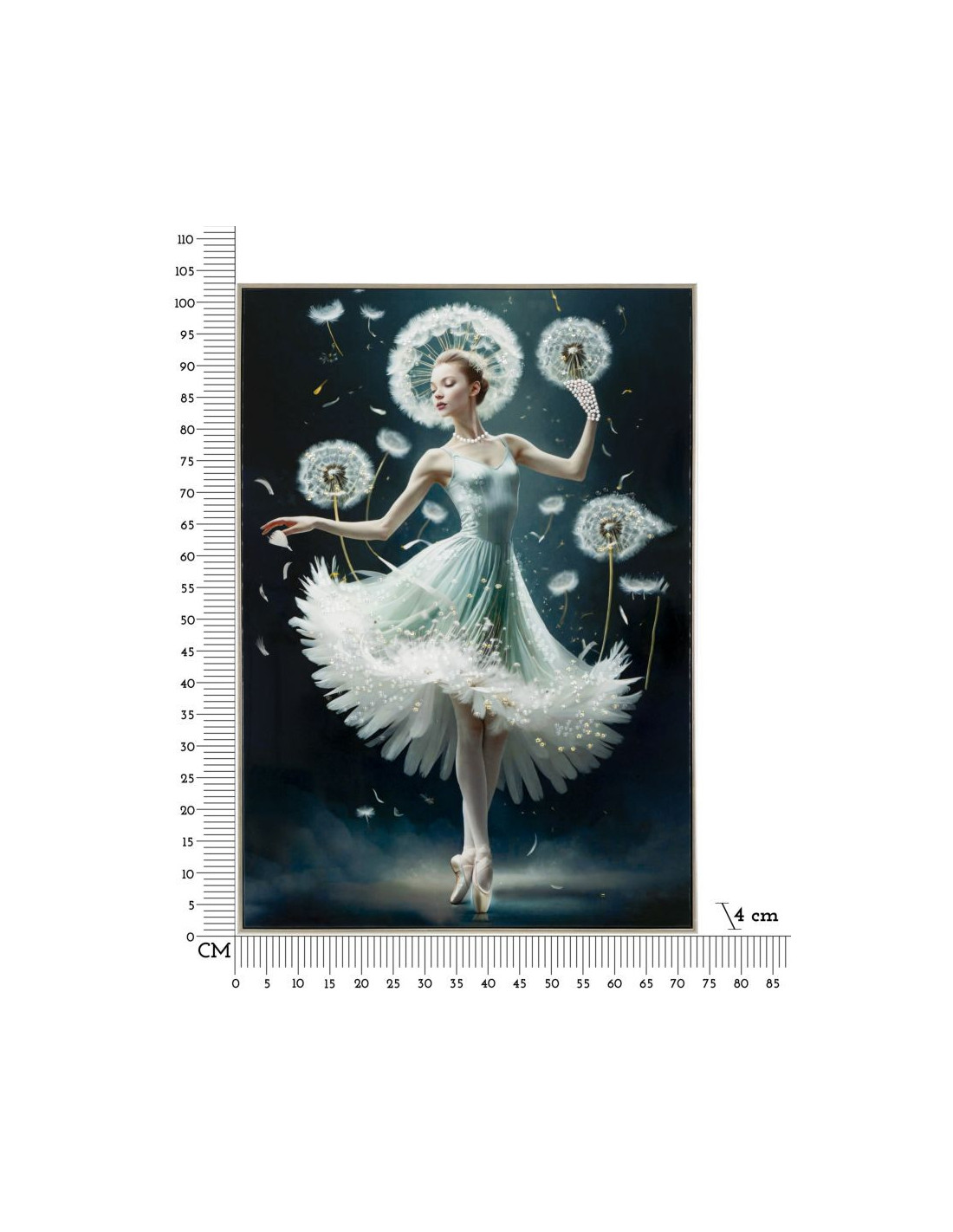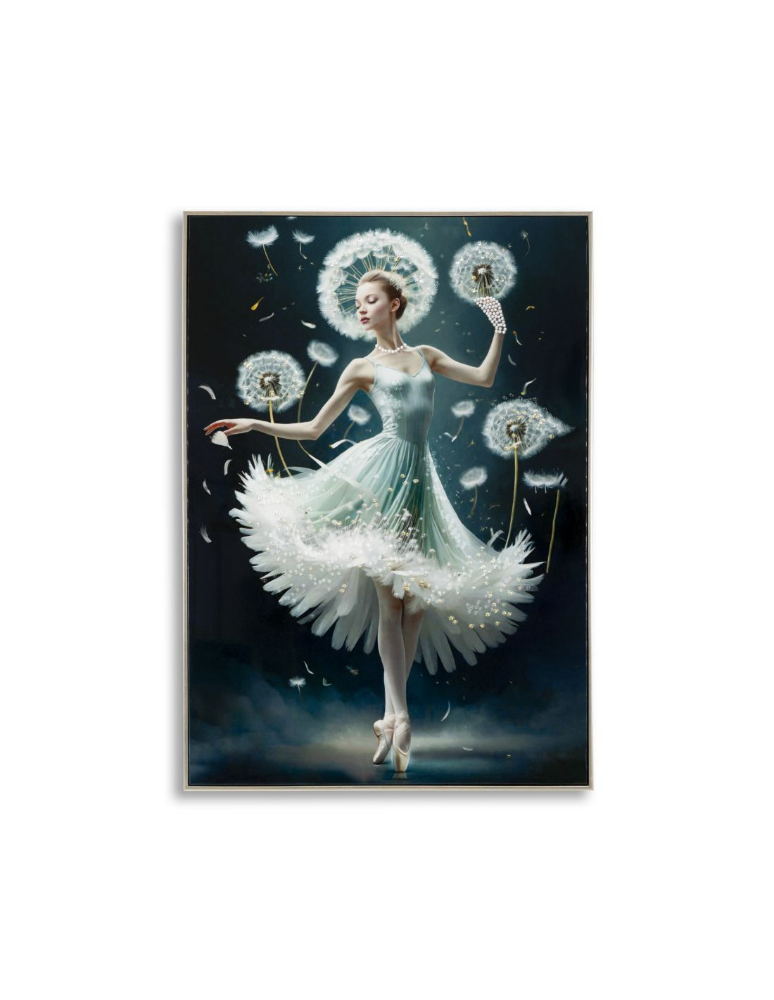 Grande toile murale peinte Danseuse pissenlits bras levés 72x102 avec cadre argenté Dancing