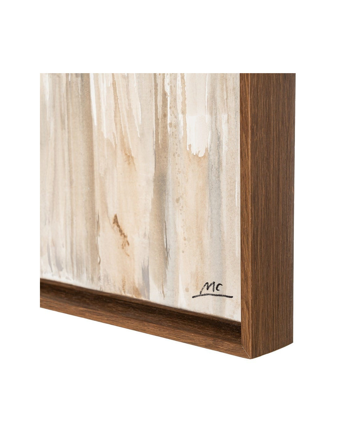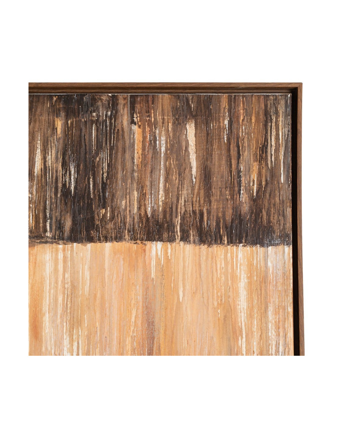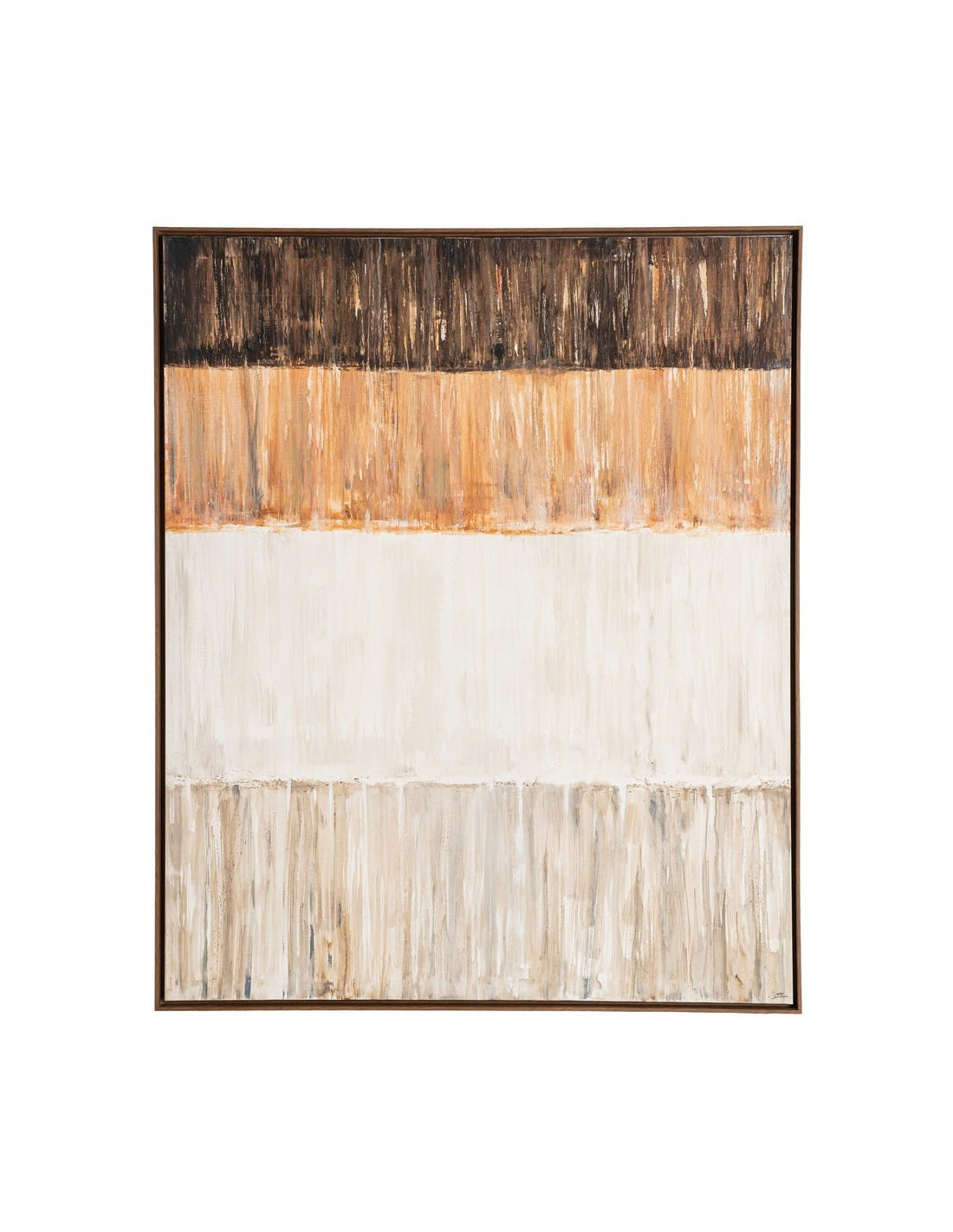 Grande Toile murale peinte design abstrait 132x162 Cadre en bois d'ayous marron foncé Beige Marron Dégradé Stratéa