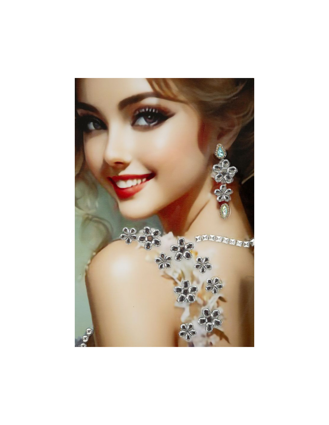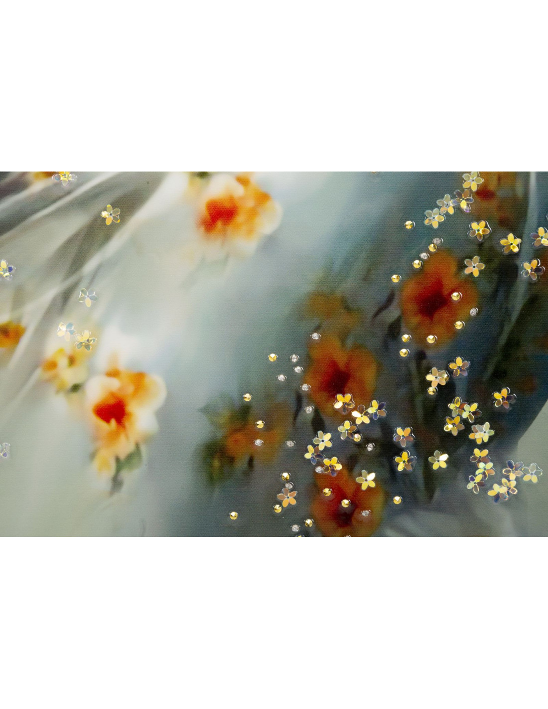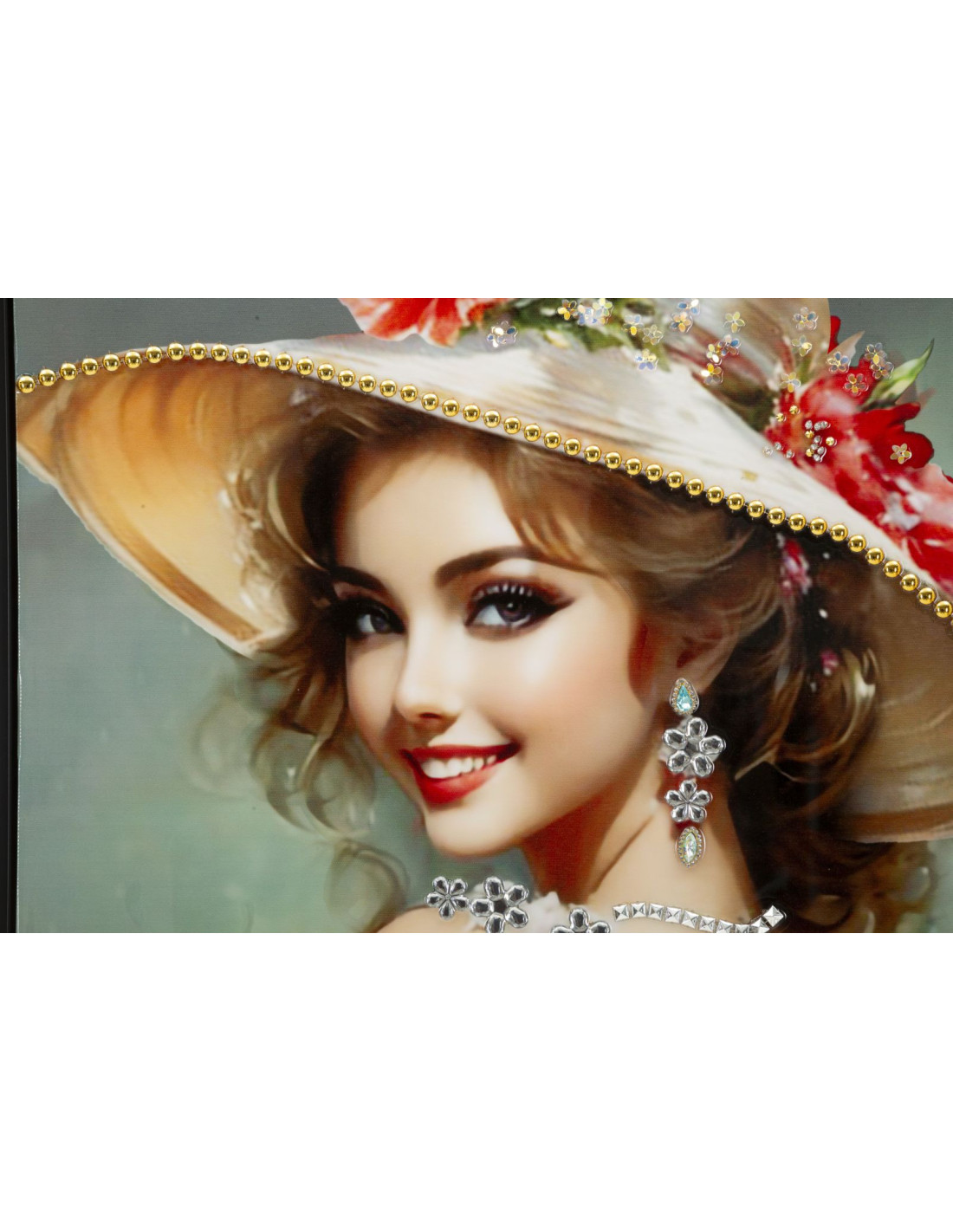 Grande toile murale peinte Femme élégante robe grise fleurs orange 52x152 avec cadre noir Elegant