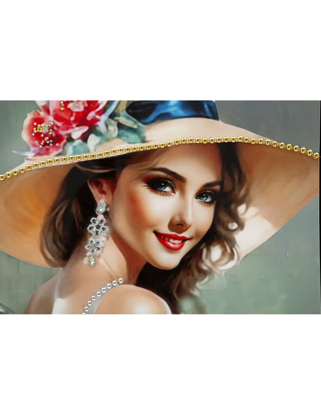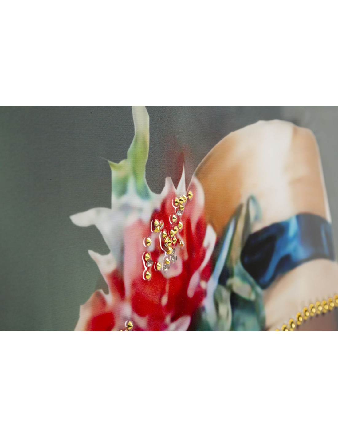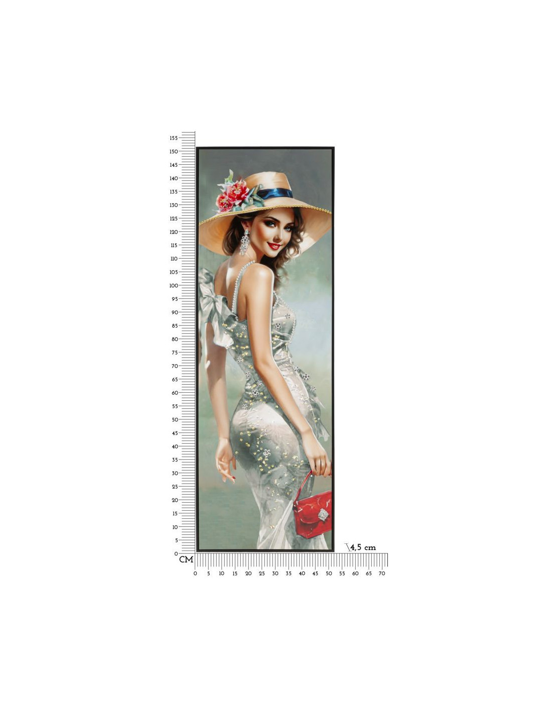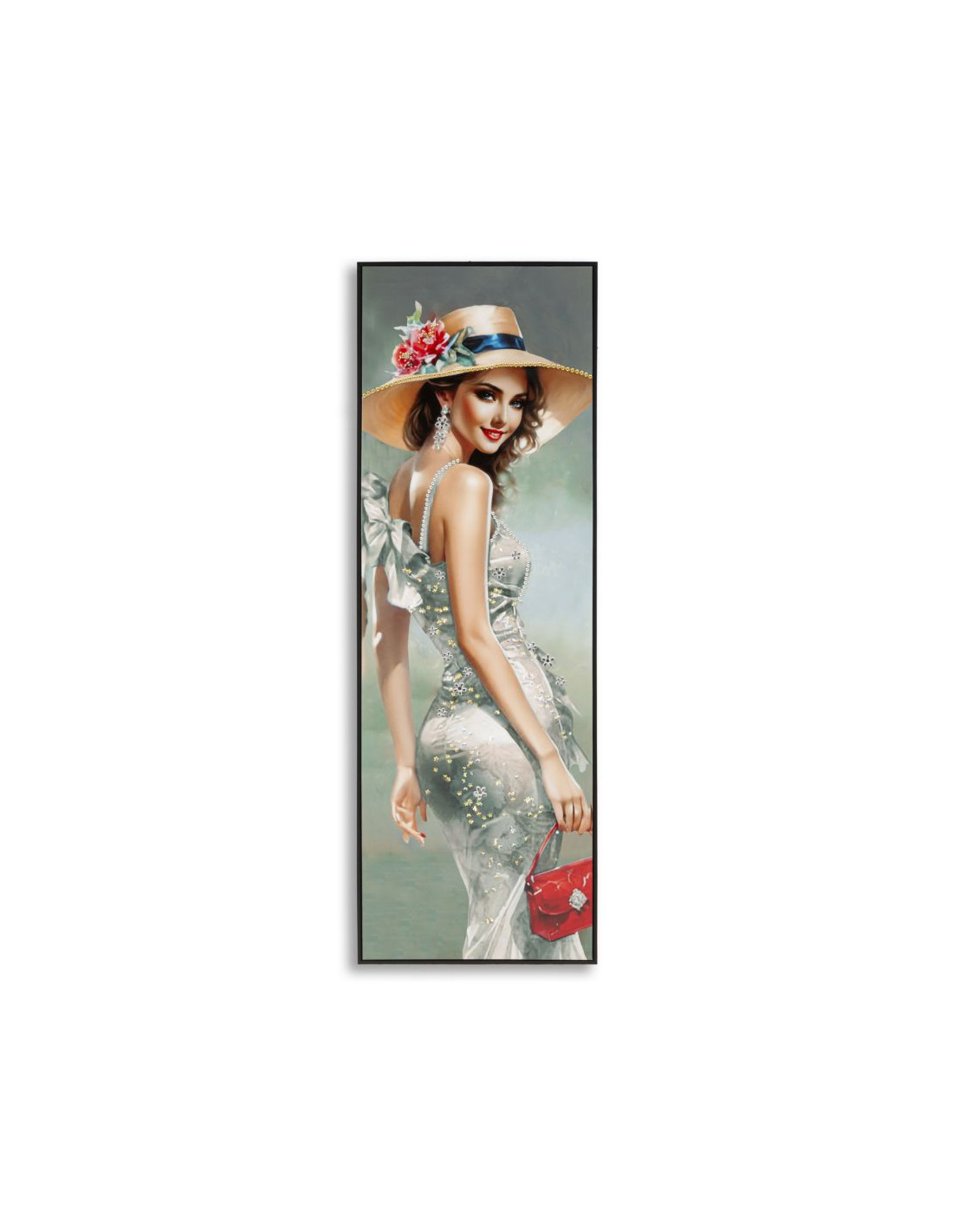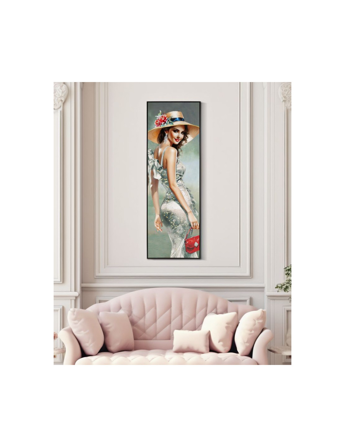 Grande toile murale peinte Femme élégante robe grise sac rouge 52x152 avec cadre noir Elegant