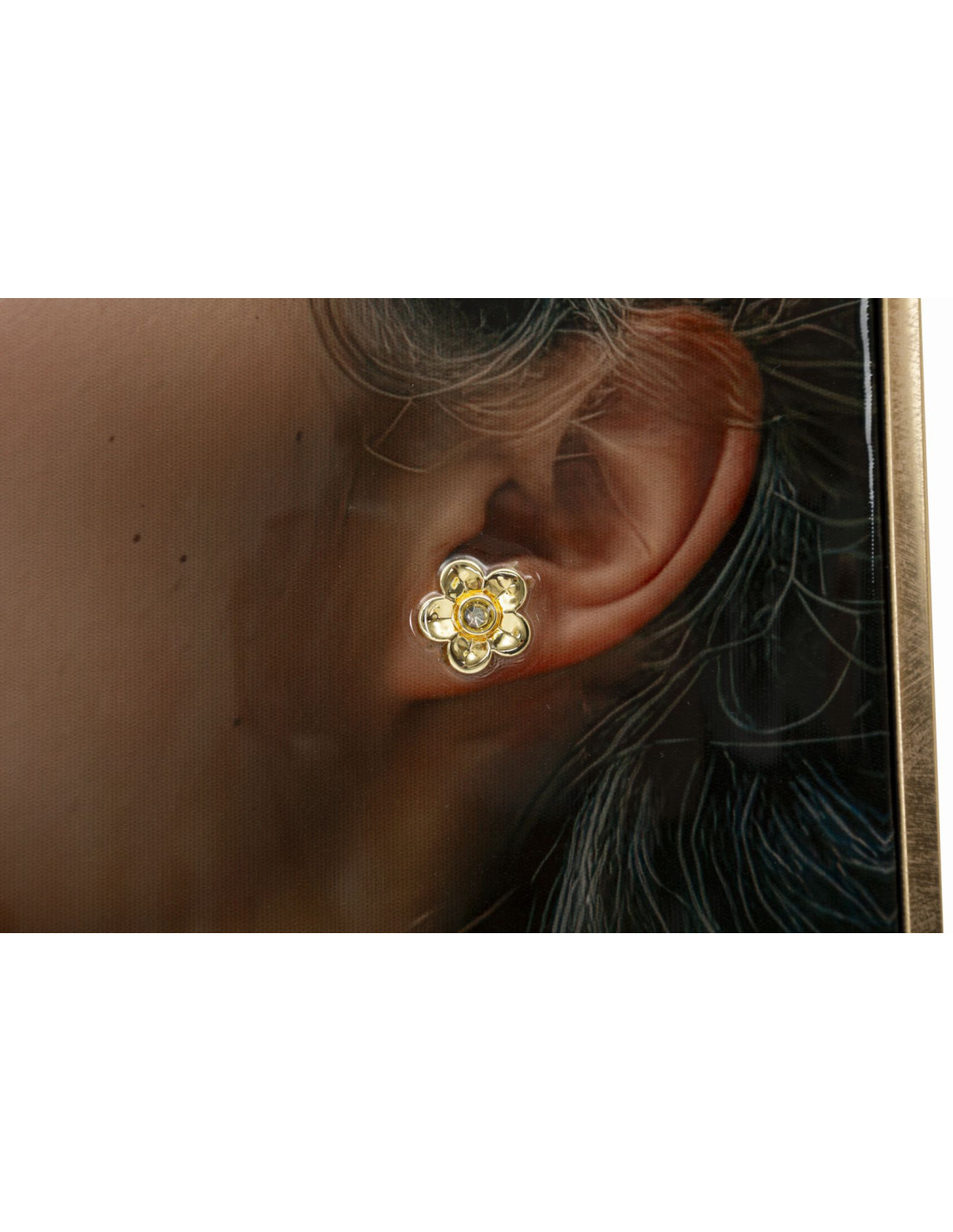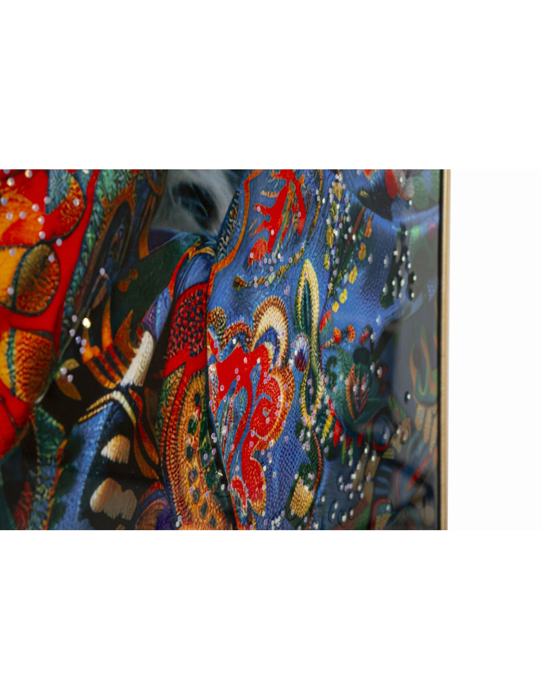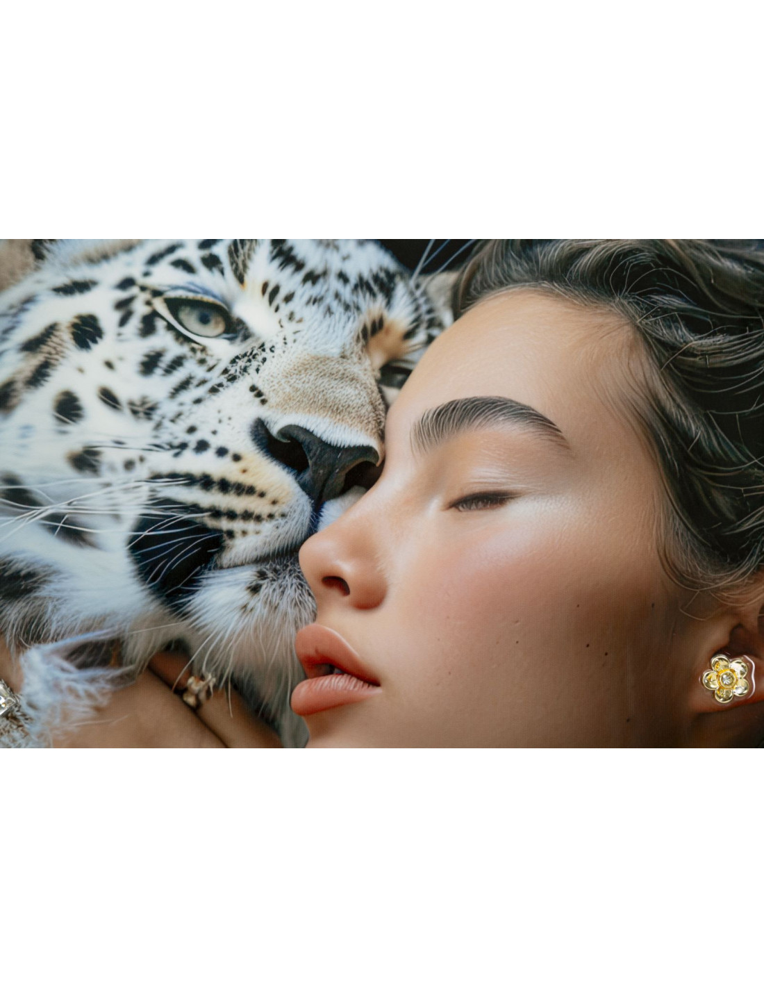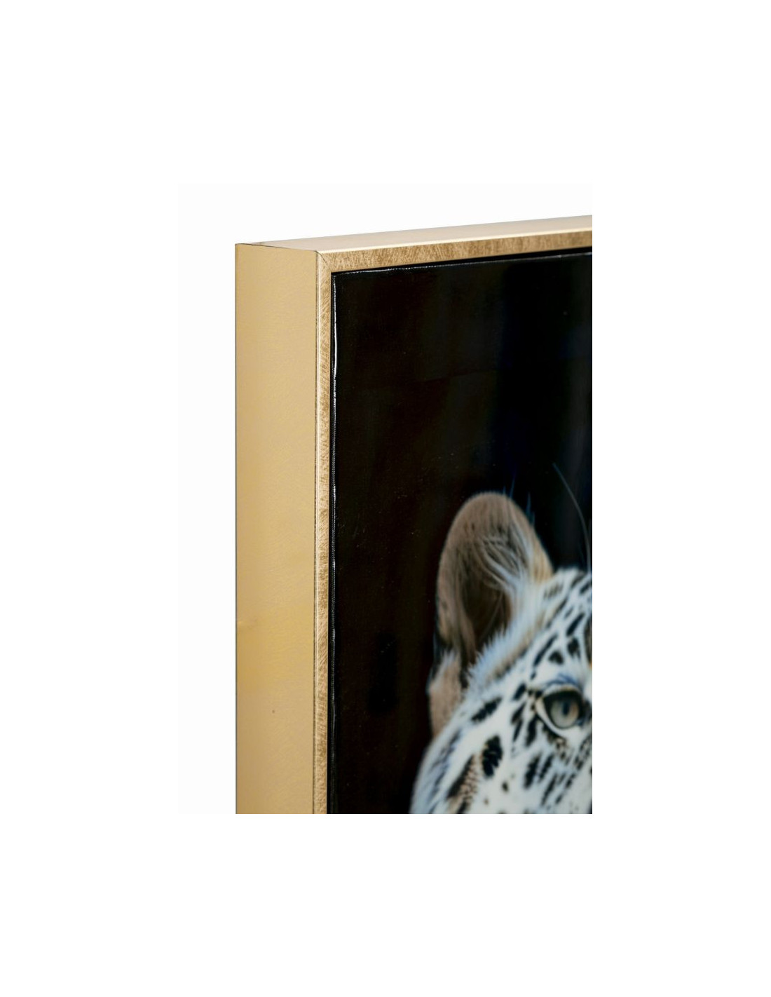 Grande Toile murale peinte Femme Léopard des neiges 52x102 avec cadre doré Moira