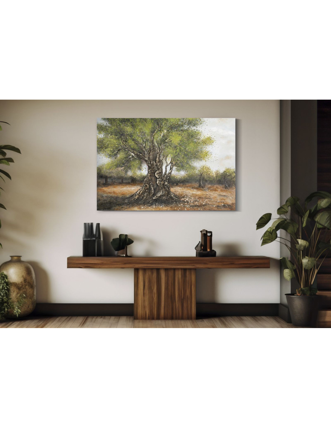 Grande Toile murale peinte moderne Oliviers 120x80 Olivo C