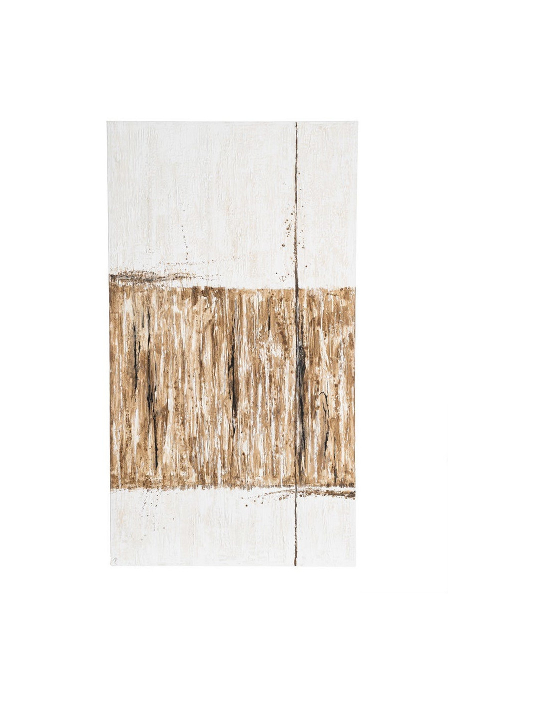 Grande Toile murale peinte Motif abstrait 100x180 Blanc cassé Marron clair Terryl