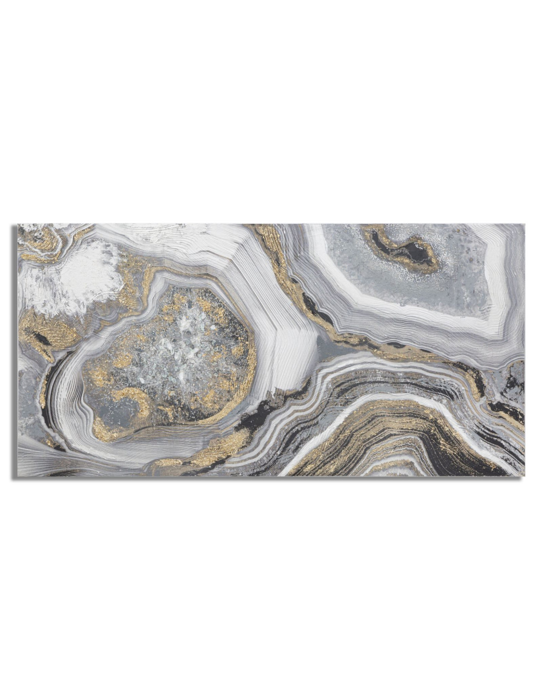Grande Toile murale peinte motif abstrait Bois de pin Gris Blanc Doré Cave 120x60