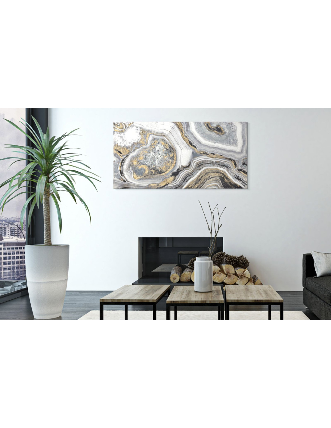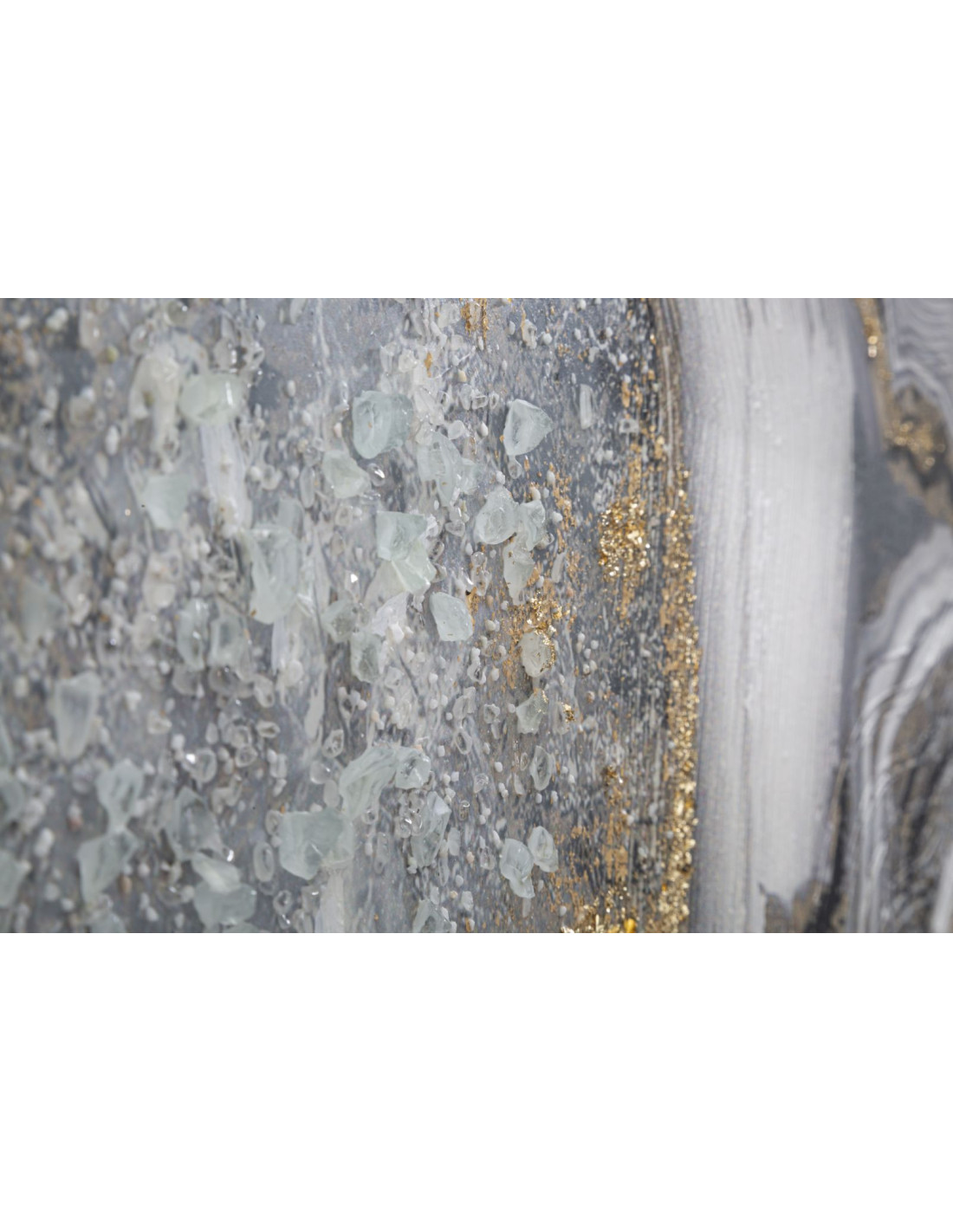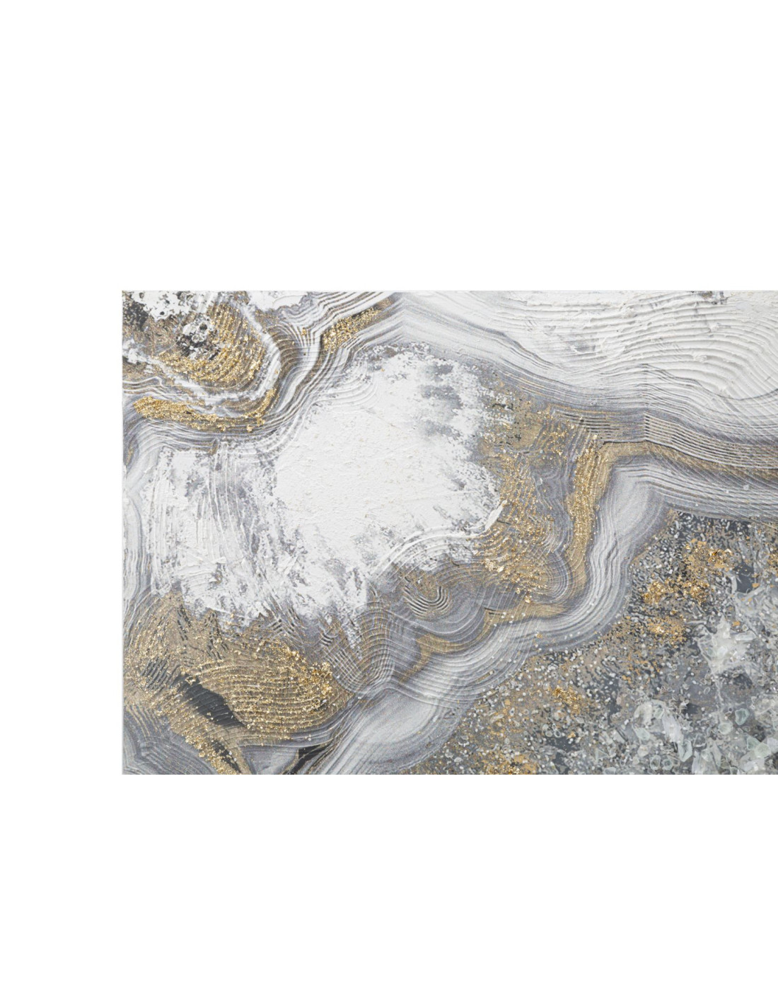 Grande Toile murale peinte motif abstrait Bois de pin Gris Blanc Doré Cave