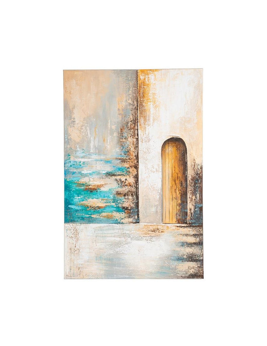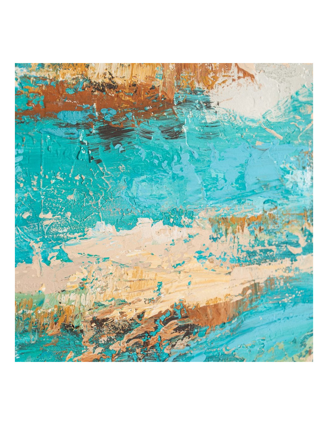 Grande Toile murale peinte Motif méditerranéen 100x150 Bleu turquoise Blanc crème Azuryl