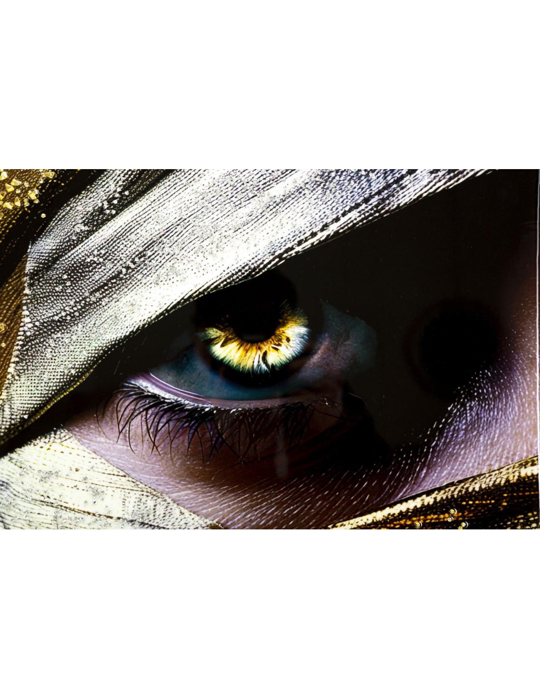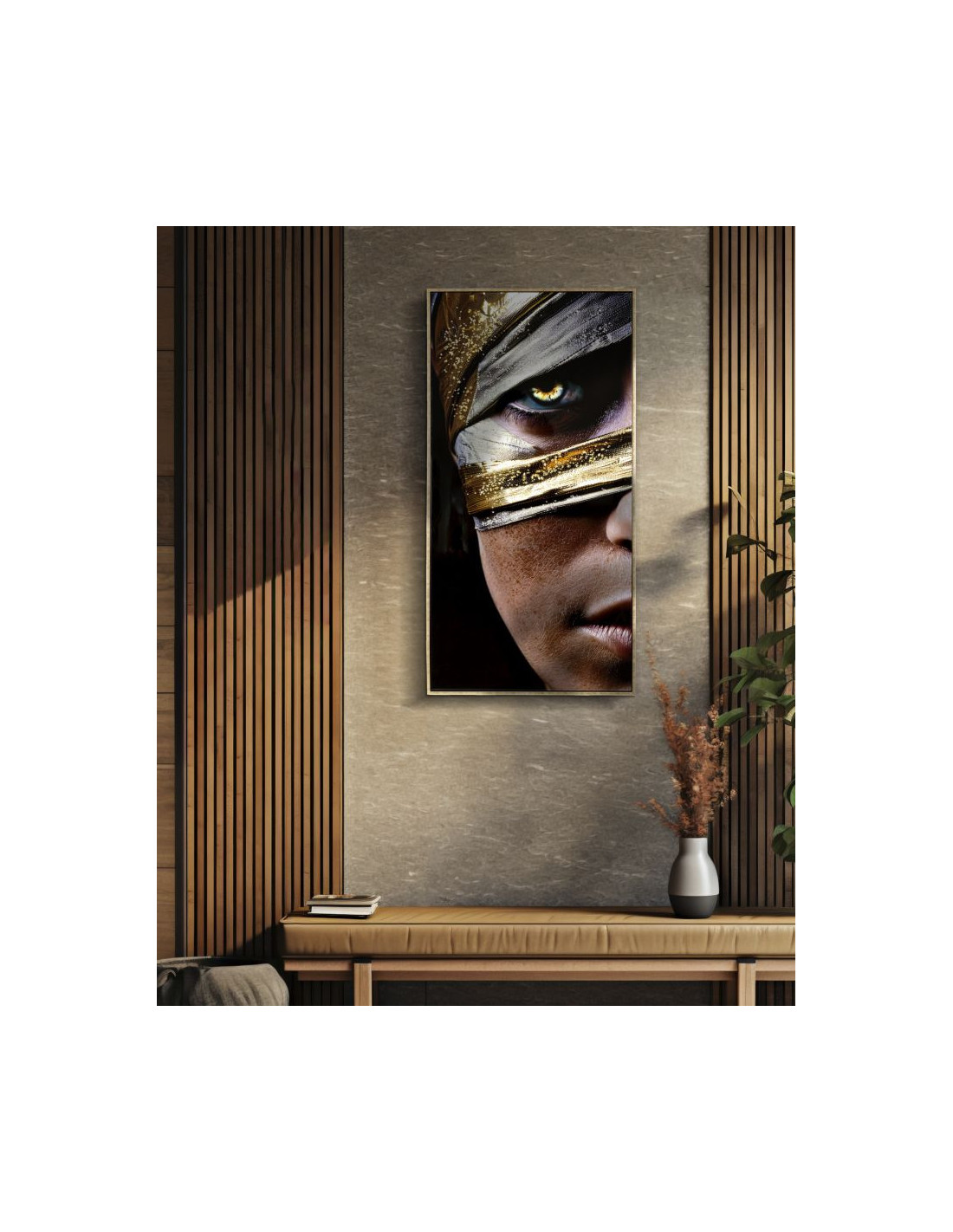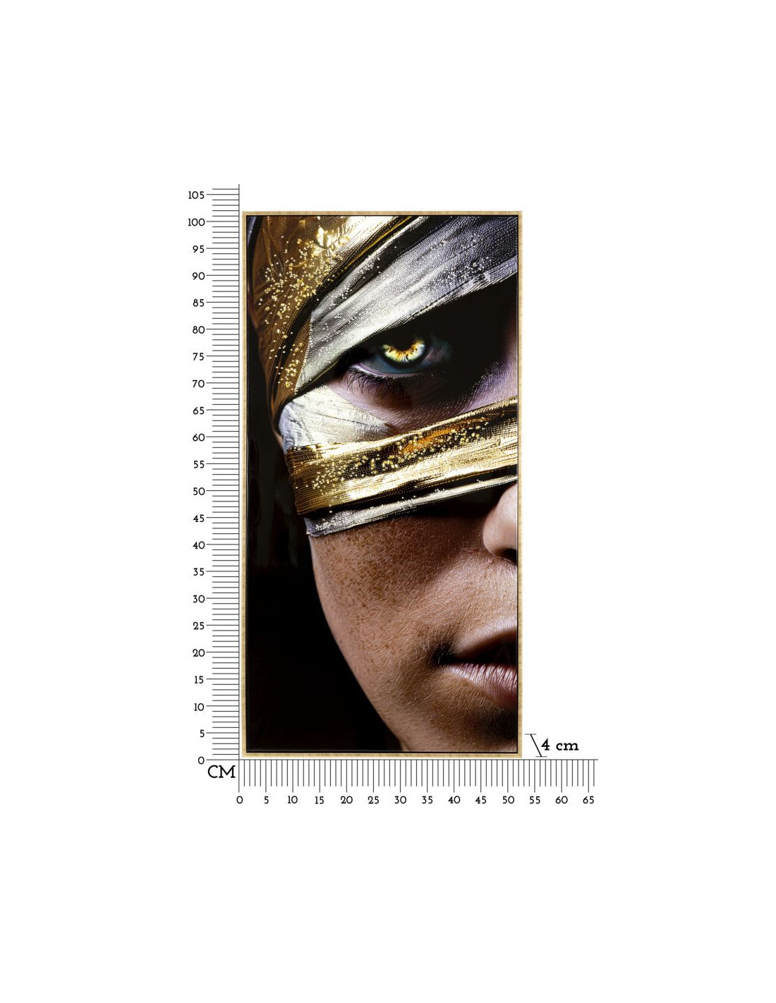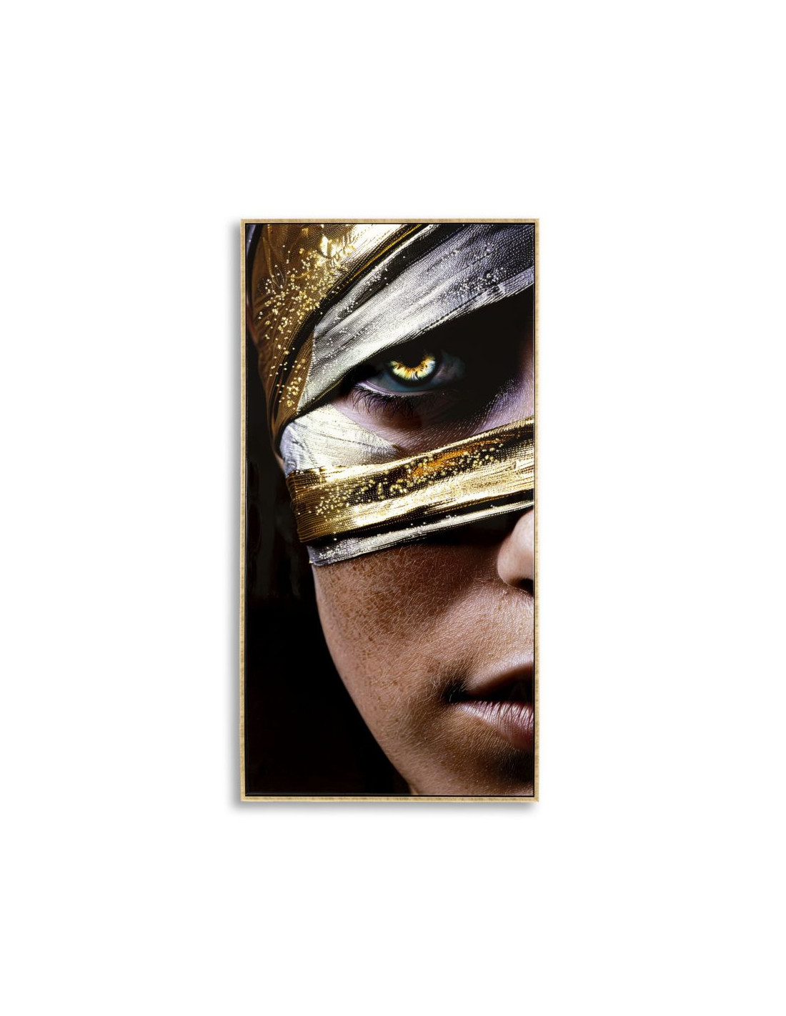 Grande Toile murale peinte Portrait Regard Or 52x102 avec cadre doré Nairobi