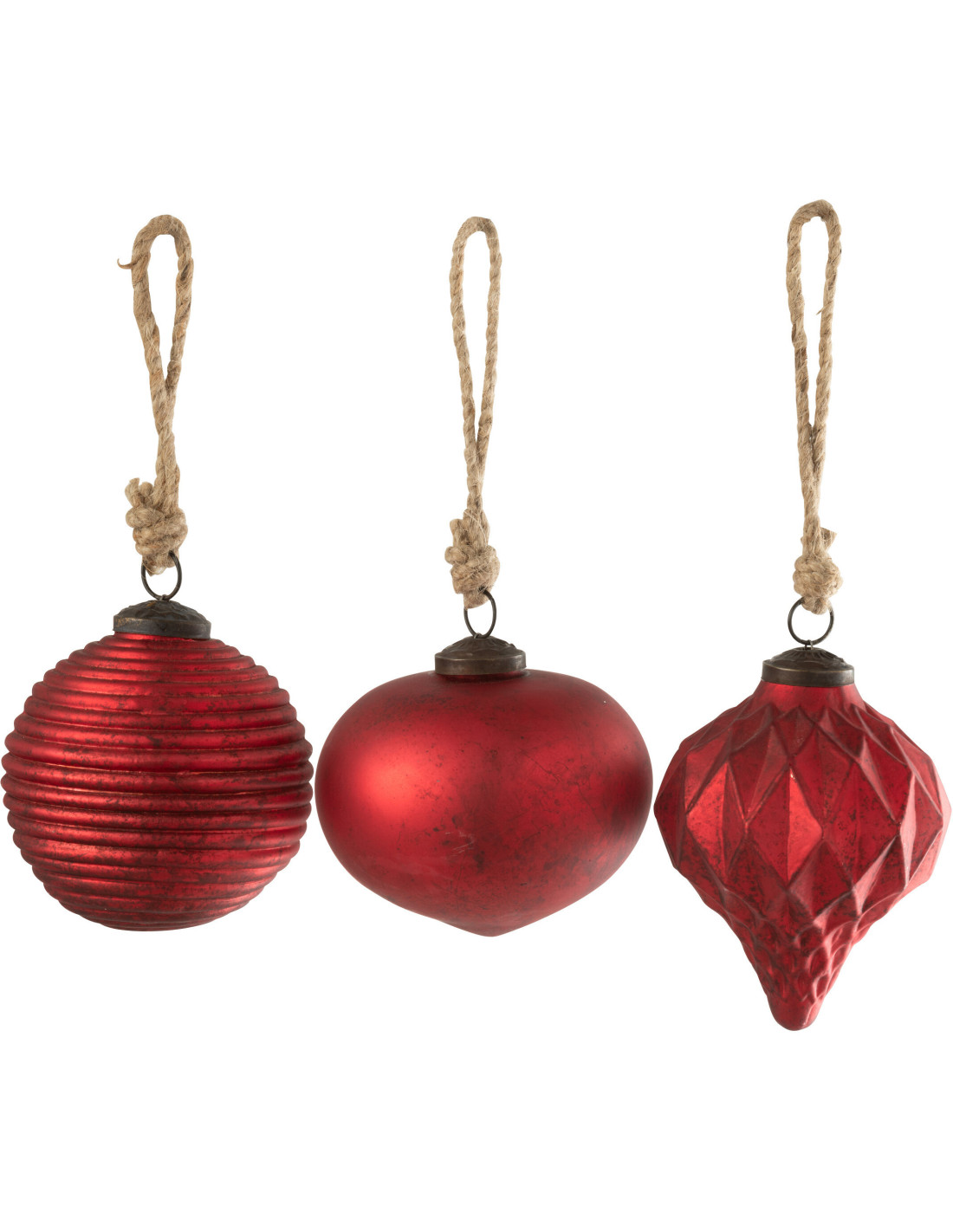 Grandes Boules de Noël vintage 10 cm en Verre Rouge Oxydé Obscyra (Lot de 3)