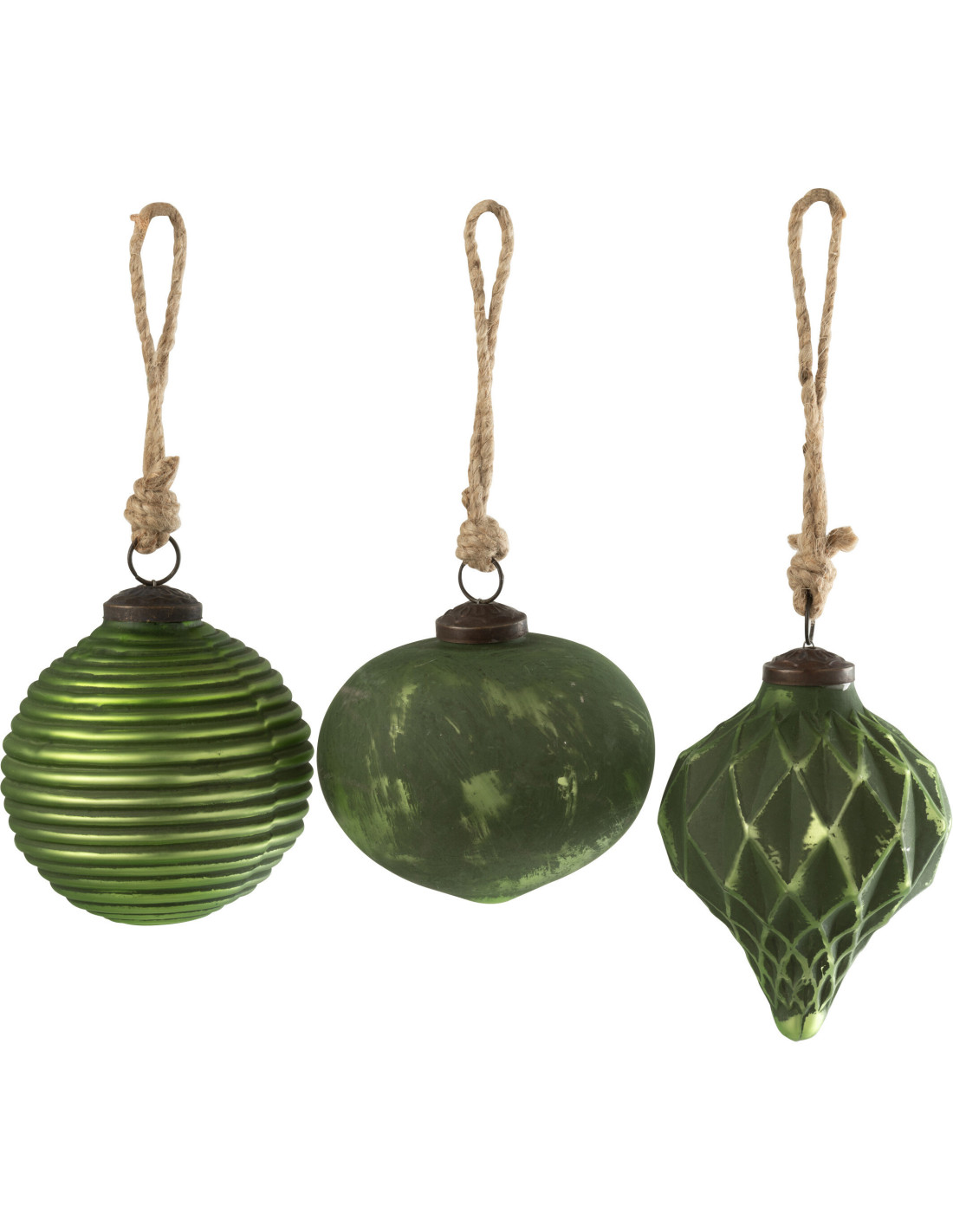 Grandes Boules de Noël vintage 10 cm en Verre Vert Oxydé Obscyra (Lot de 3)