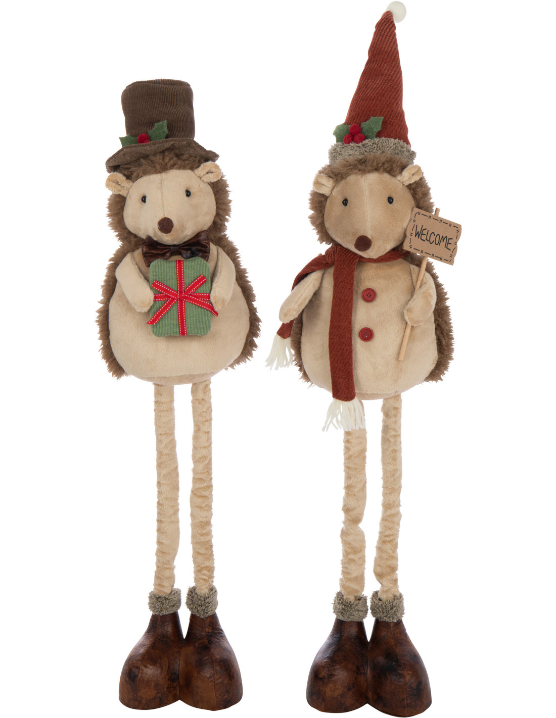 Grandes Figurines déco Noël Hérissons XL Hauteur 109 cm en Tissu Beige Résine Héribois (Lot de 2) - 1