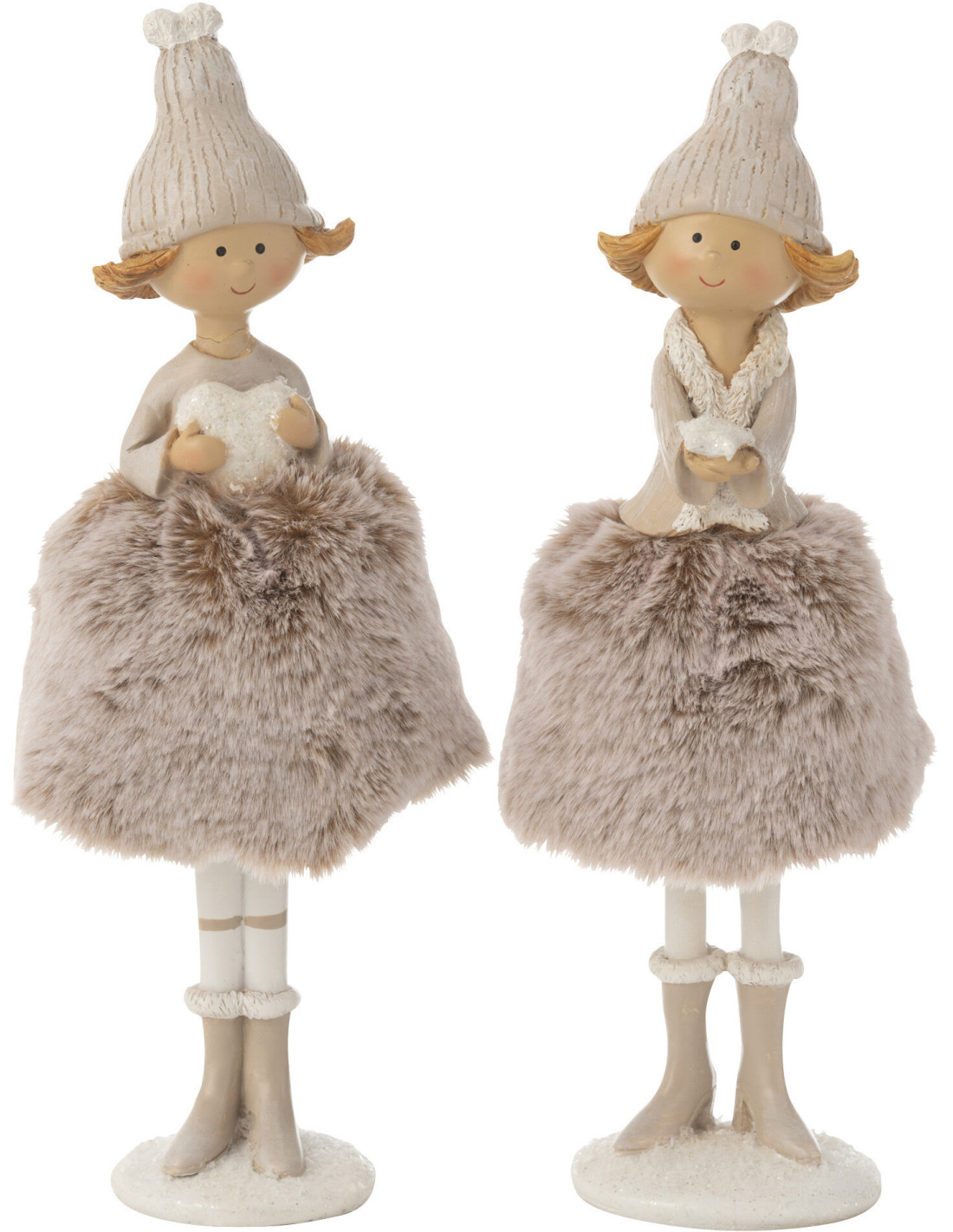 Grandes Statuettes déco Anges Coeur & Étoile Hauteur 28 cm en Résine Tissu Marron clair Cyrval (Lot de 2)