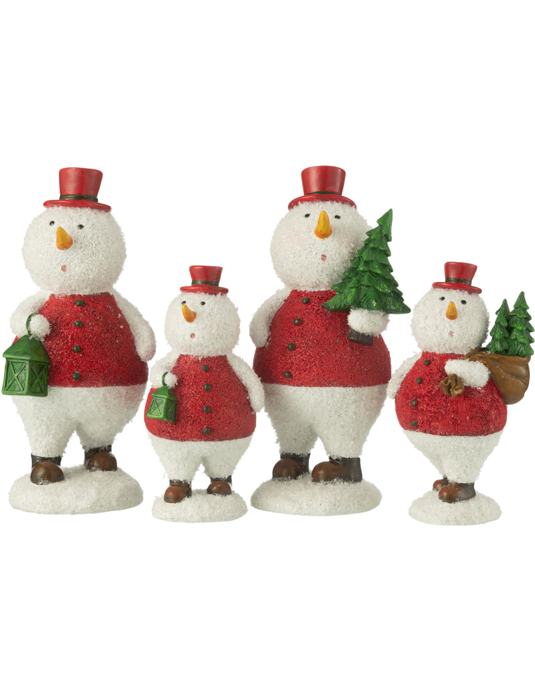 Grandes Statuettes déco Bonhommes de neige Hauteur 24 cm en Résine Blanc Rouge Vert Thariel (Lot de 2)
