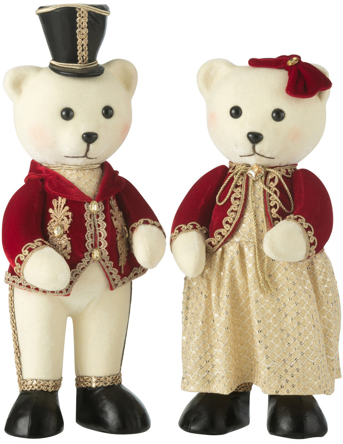 Grandes Statuettes déco Oursons Costumes Hauteur 46 cm en Résine Tissu Blanc Rouge Elyvorn (Lot de 2)