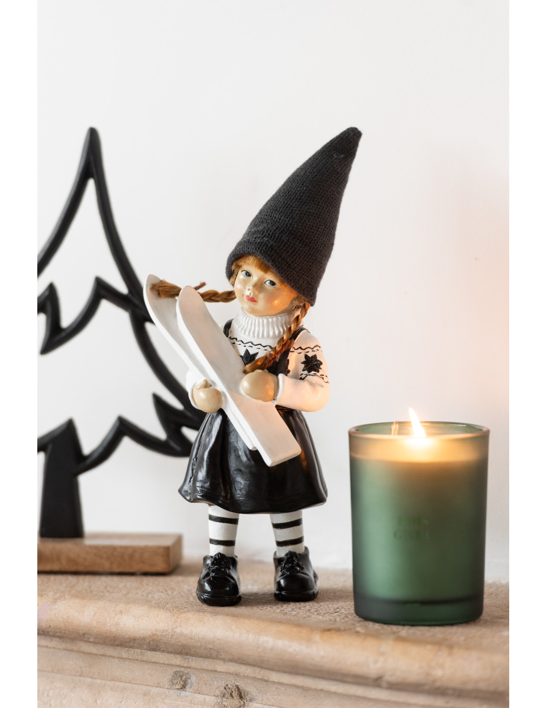 Grandes Statuettes déco vintage Enfants Ski Hauteur 29 cm en Résine Noir Blanc Clorinn (Lot de 2)