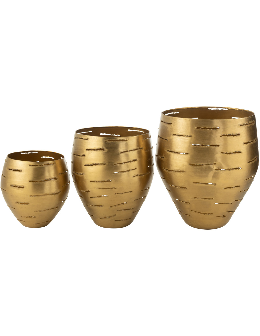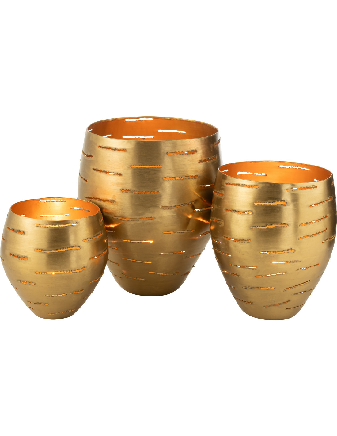 Grands Photophores modernes ronds en Métal Doré Phorynia (Lot de 3)