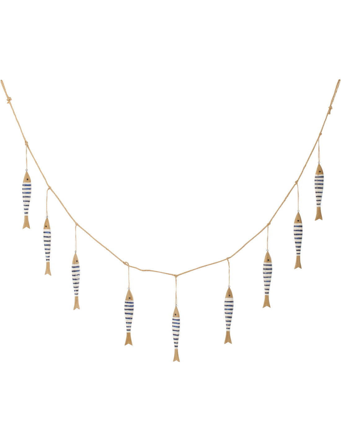 Guirlande déco bord de mer Poissons 175 cm Bois de paulownia Naturel Bleu foncé Blanc Nautina