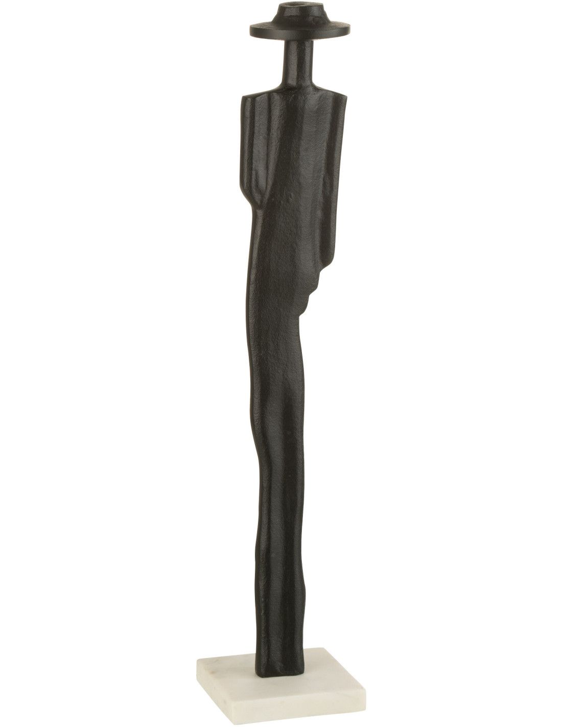 Statue design homme chapeau abstrait métal noir marbre blanc 52 cm
