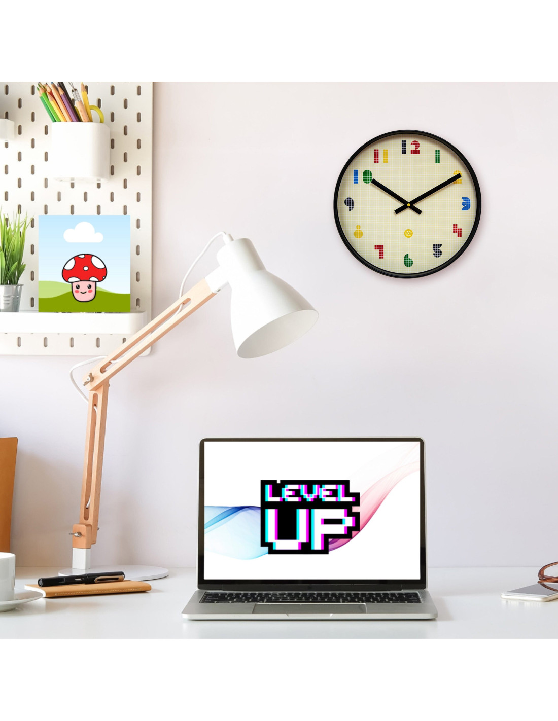 Wall Clock 35cm-Silent-Black/Multicolour-ABS- nXt 'Bit' - 8