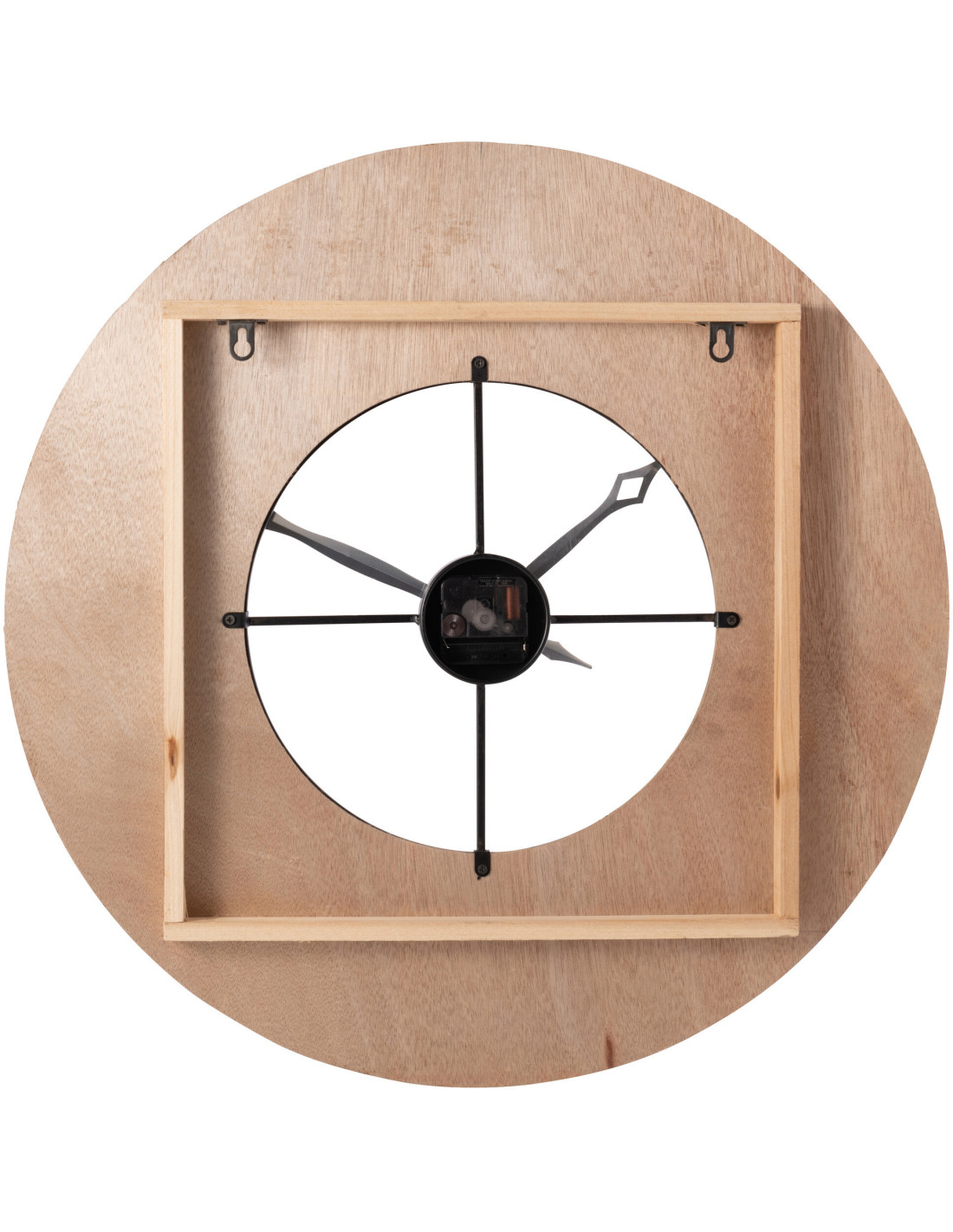 Horloge murale bord de mer Ronde 60 cm Bois MDF Métal Roseau Naturel Noir Tressé Sodi