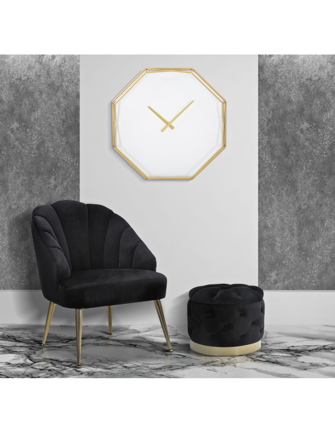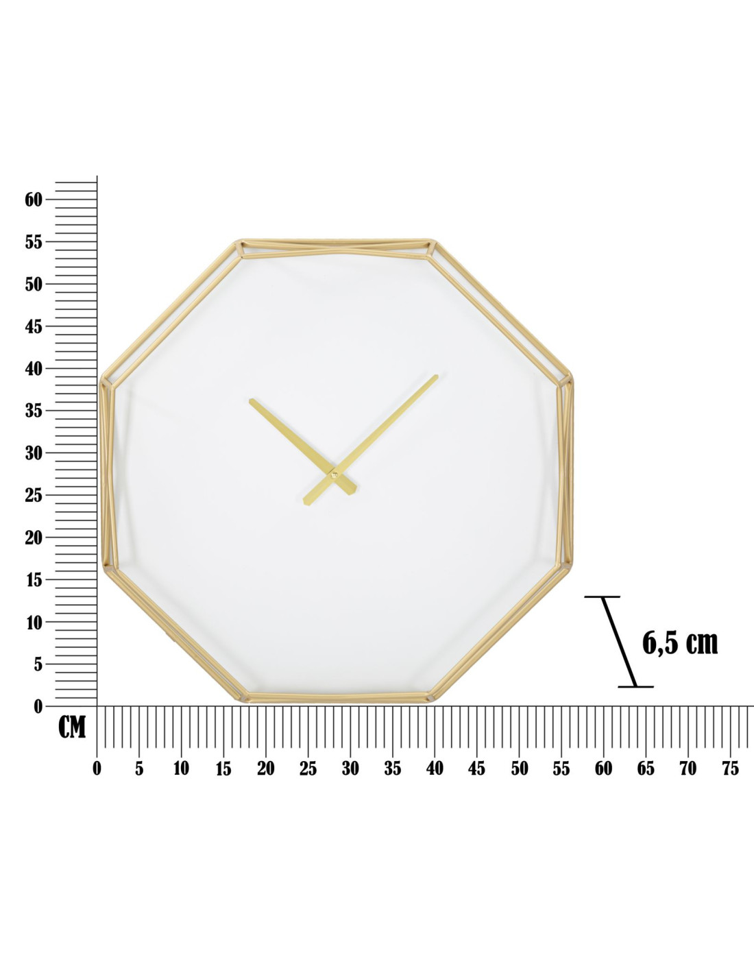 Horloge murale moderne Octogonale 56 cm en Métal Doré Plastique Blanc Goldy