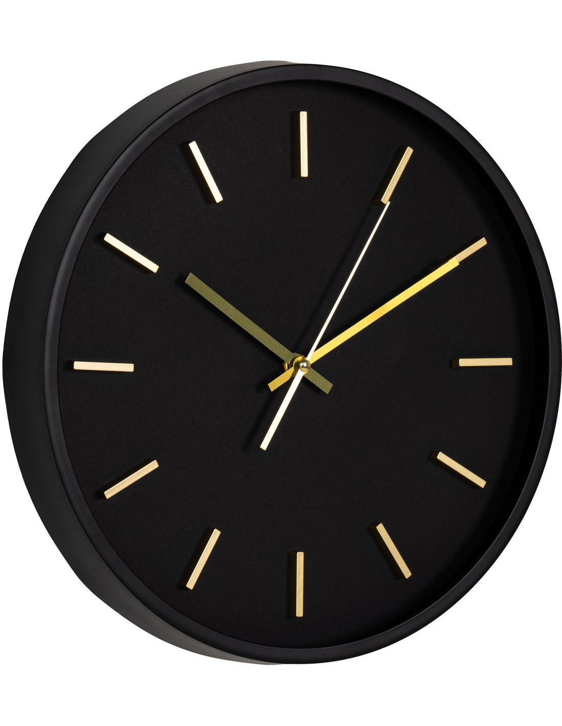 Horloge murale moderne silencieuse Ronde 35 cm Plastique Noir Doré Verre Kensington