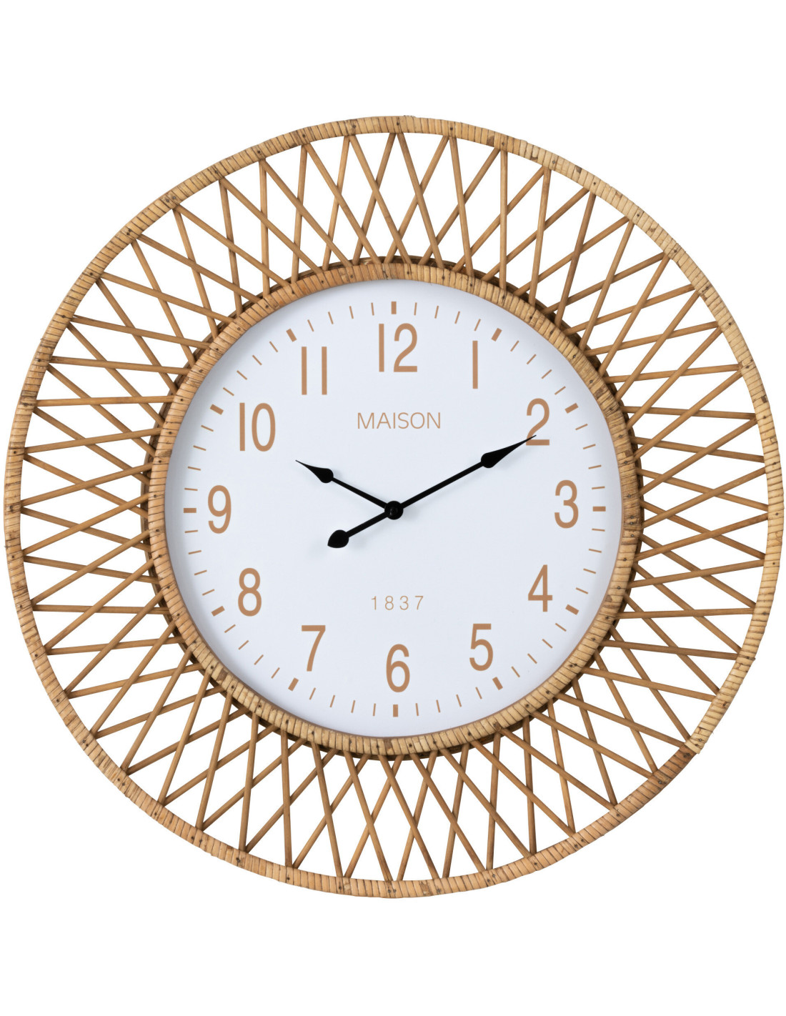 Horloge Murale Ronde XL Diamètre 60 cm en Rotin Naturel Bois Blanc Wonder