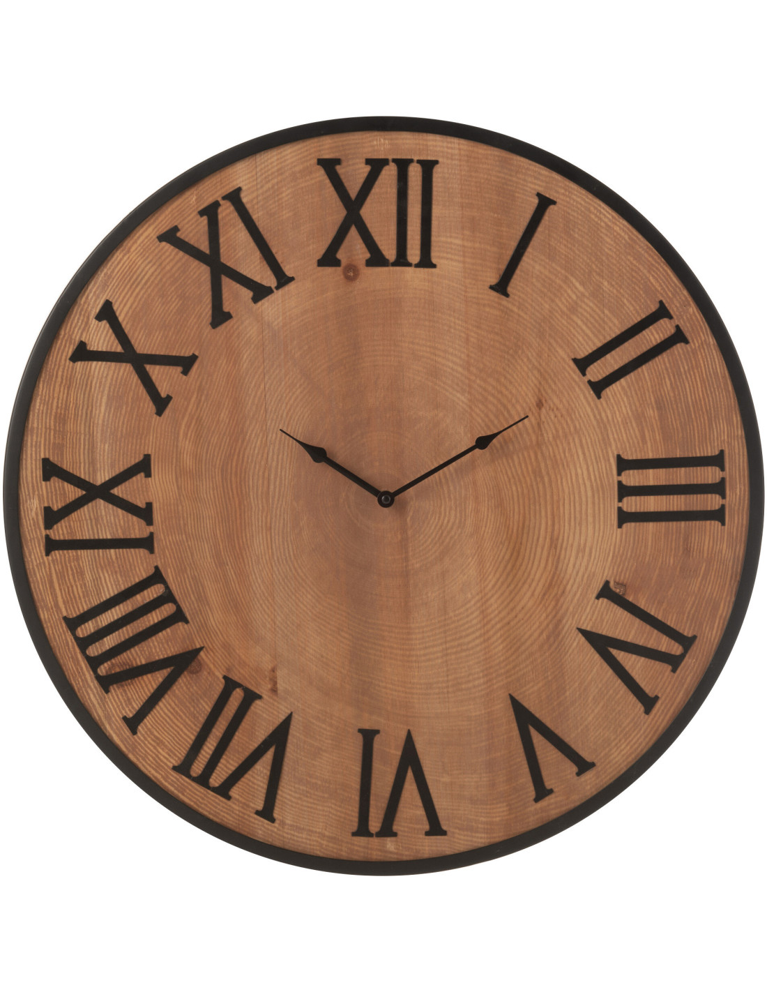 Horloge XL originale industrielle Murale Ronde 60 cm en Bois Naturel Métal Noir Farlia