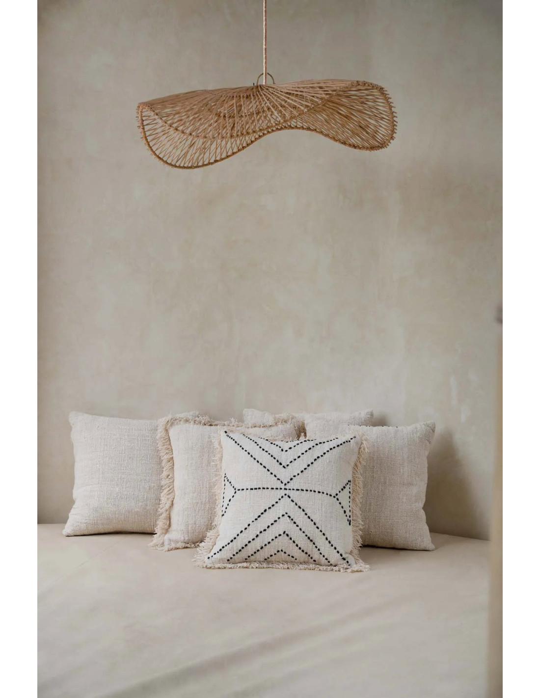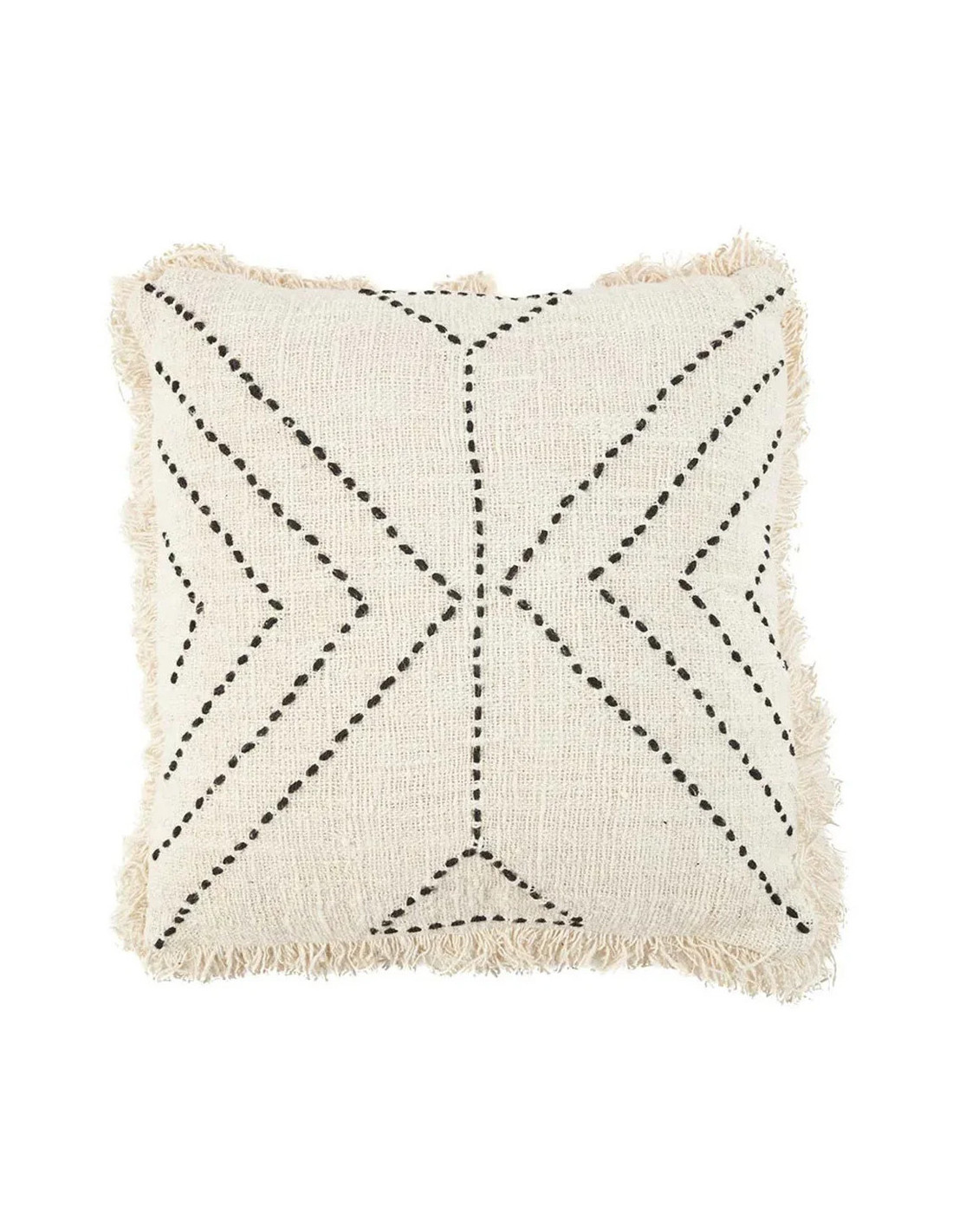 House de coussin originale Ethnique chic Carrée 50x50 en Coton Naturel Noir Avec franges The Tribal