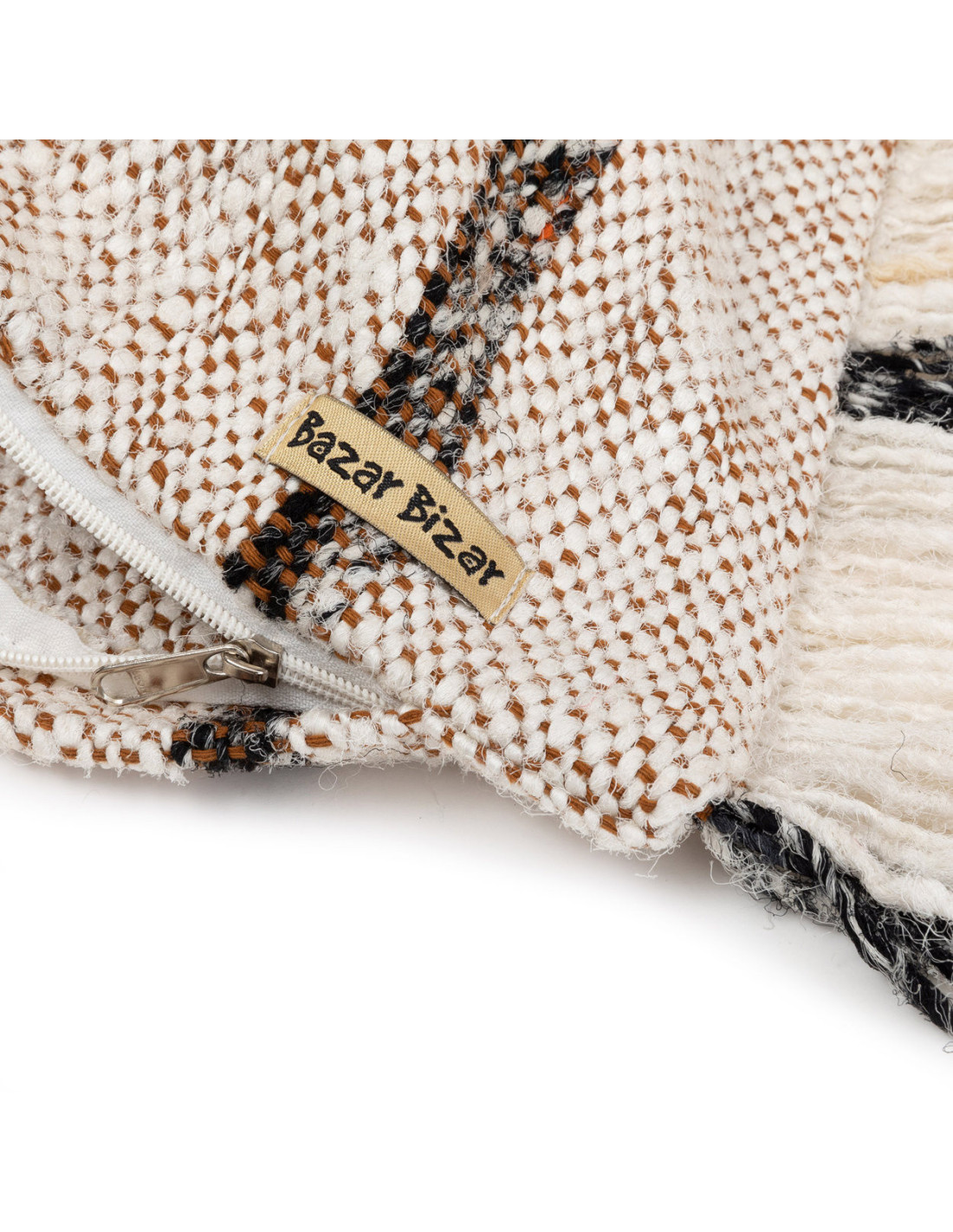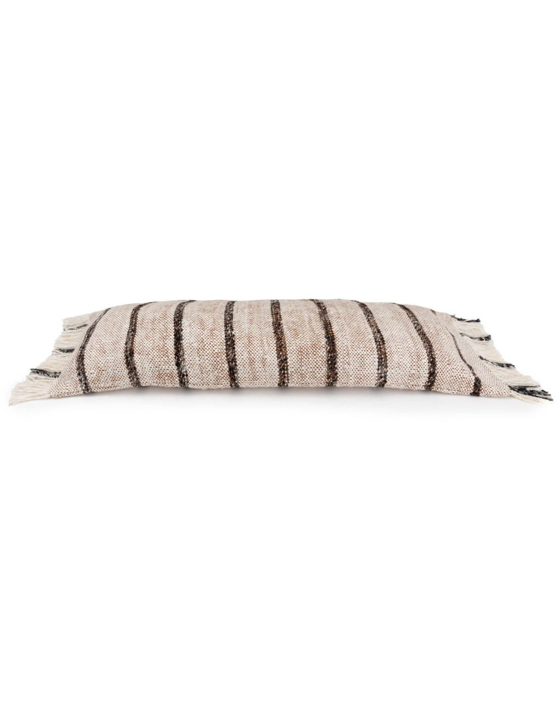 House de coussin XXL originale Rectangulaire 100x35 en Coton Blanc Marron Avec franges The Oh My Gee