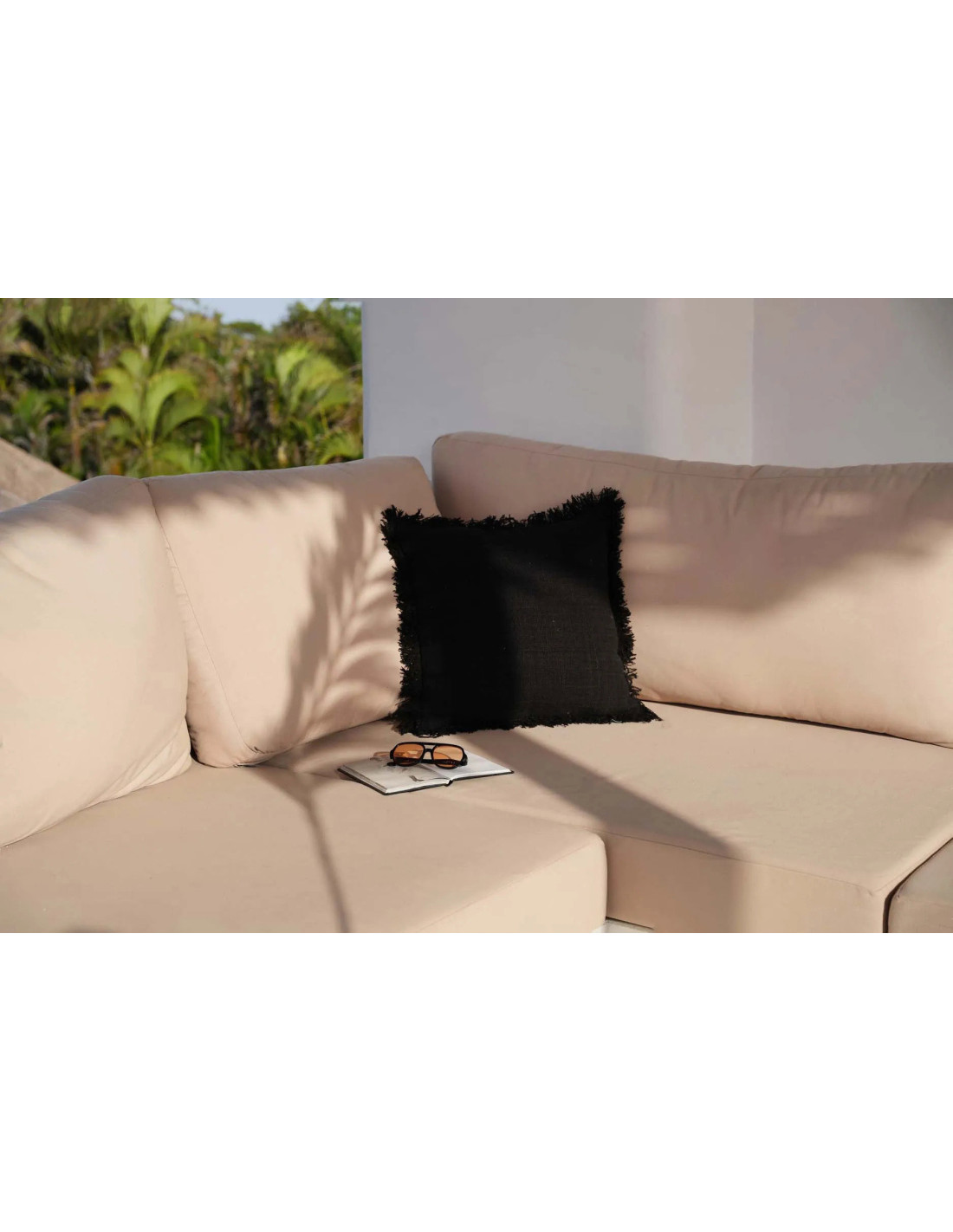 Housse de coussin originale Carrée 50x50 en Coton Noir Avec franges The Full Moon