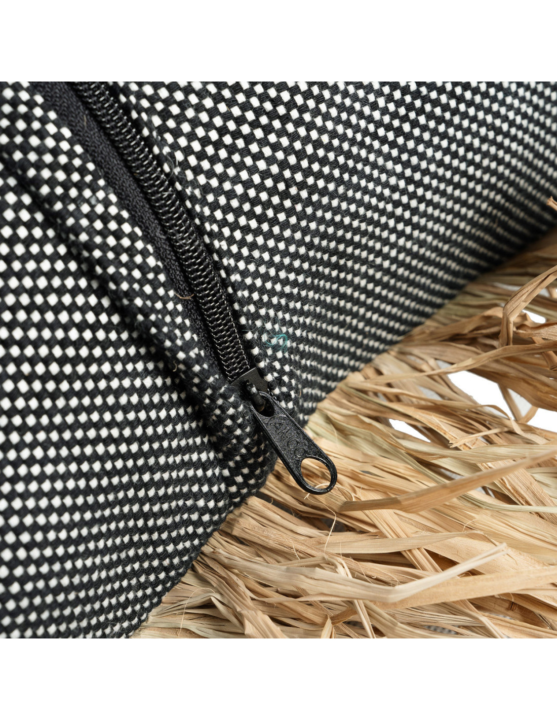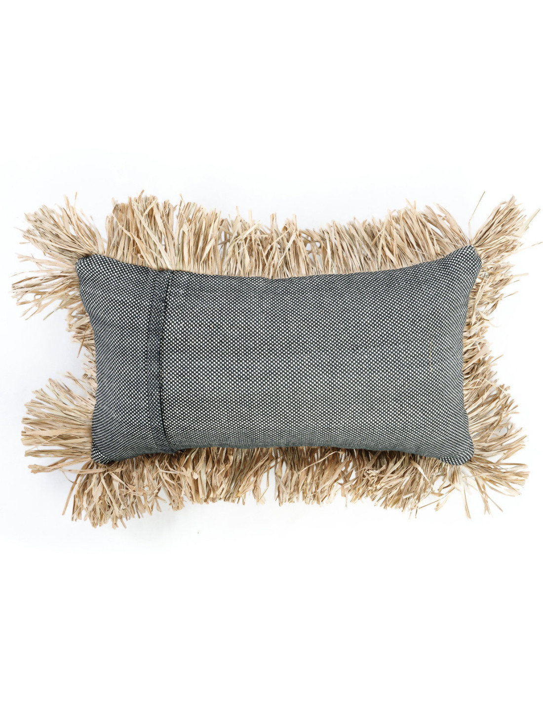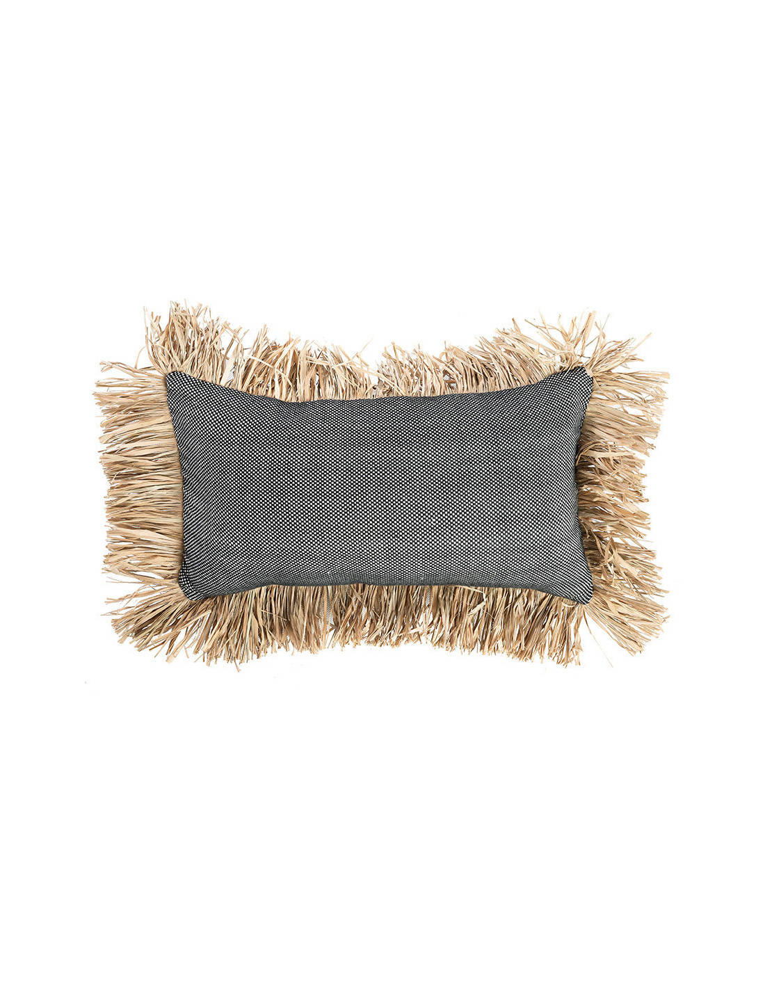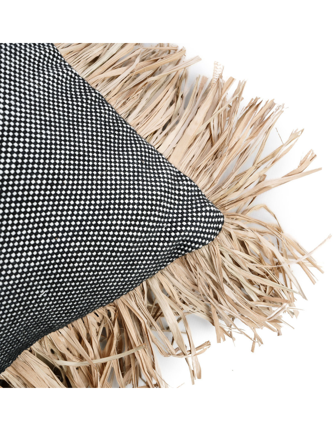 Housse de coussin Rectangulaire 50x30 en Coton Noir Raphia Naturel avec franges The Cotton Bonita