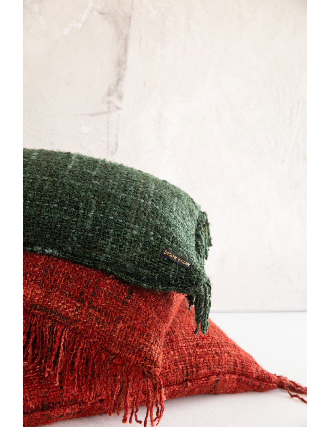 Housse de coussin Rectangulaire 50x30 en Coton Rouge cerise avec franges The Oh My Gee