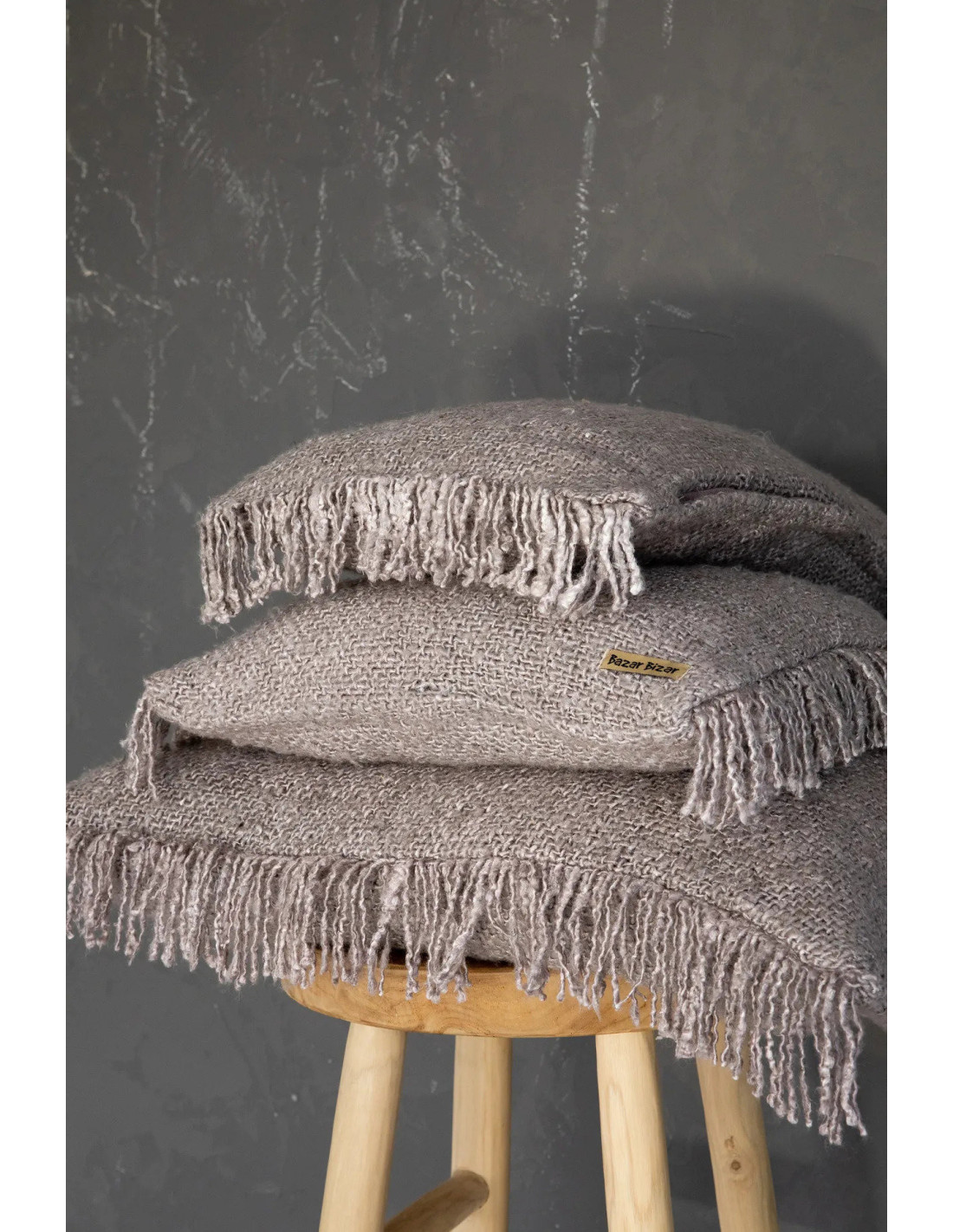 Housse de coussin XL Carrée 60x60 en Coton Gris perle avec franges The Oh My Gee