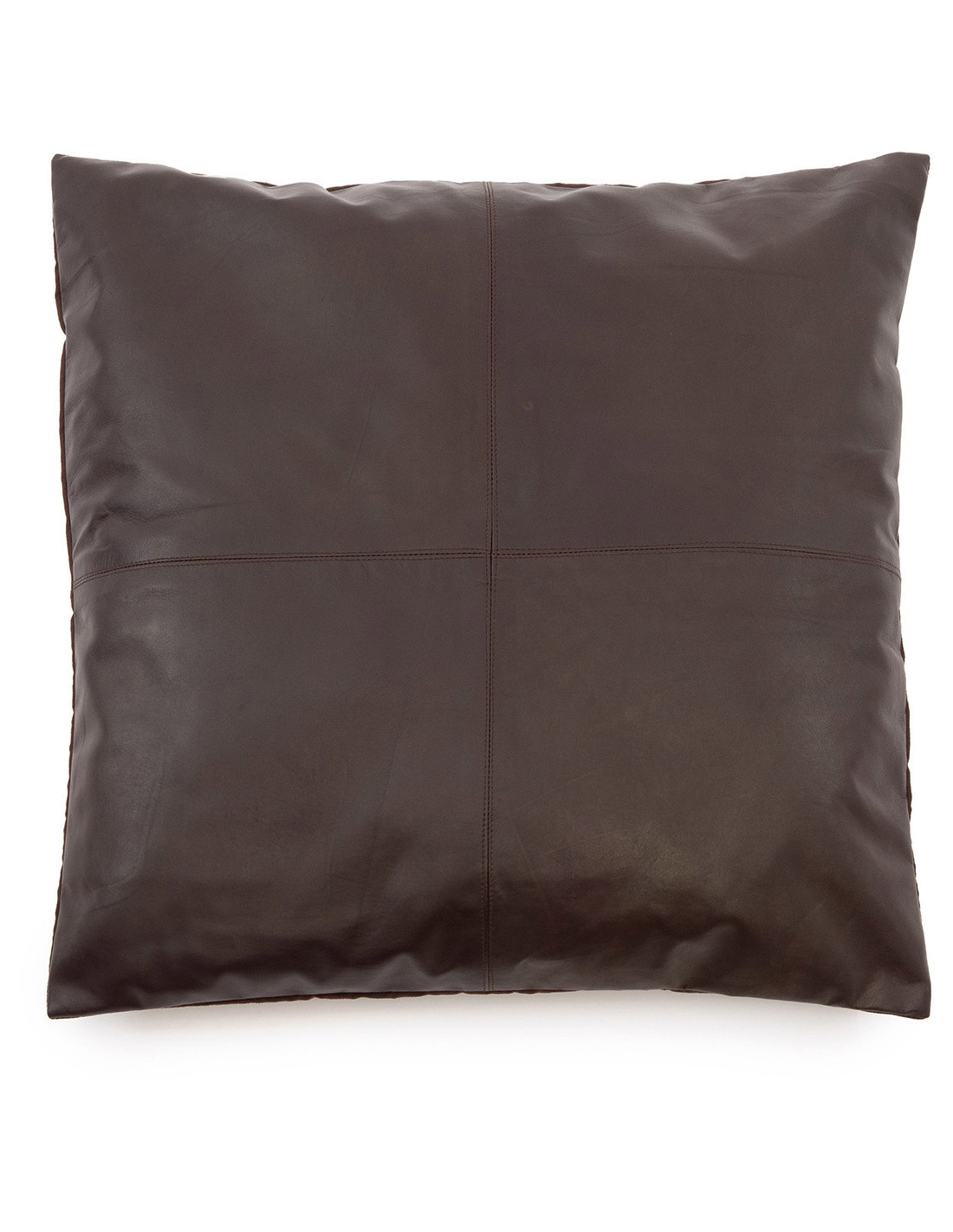 Housse de coussin XL Carrée 60x60 en Cuir véritable Marron chocolat The Four Panel Leather