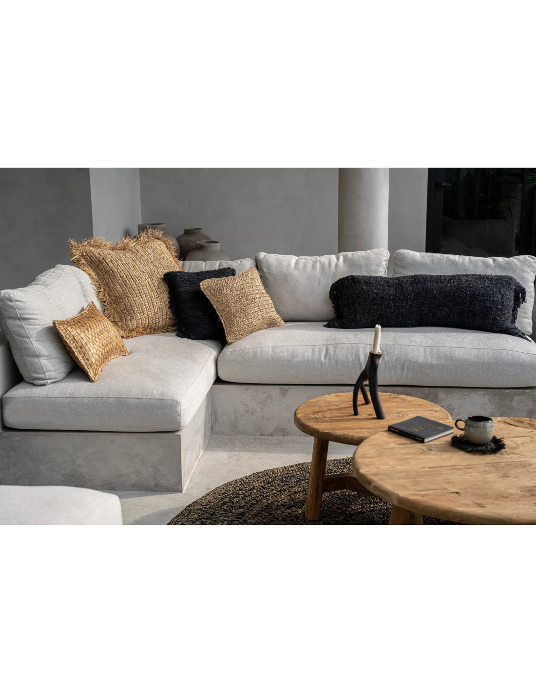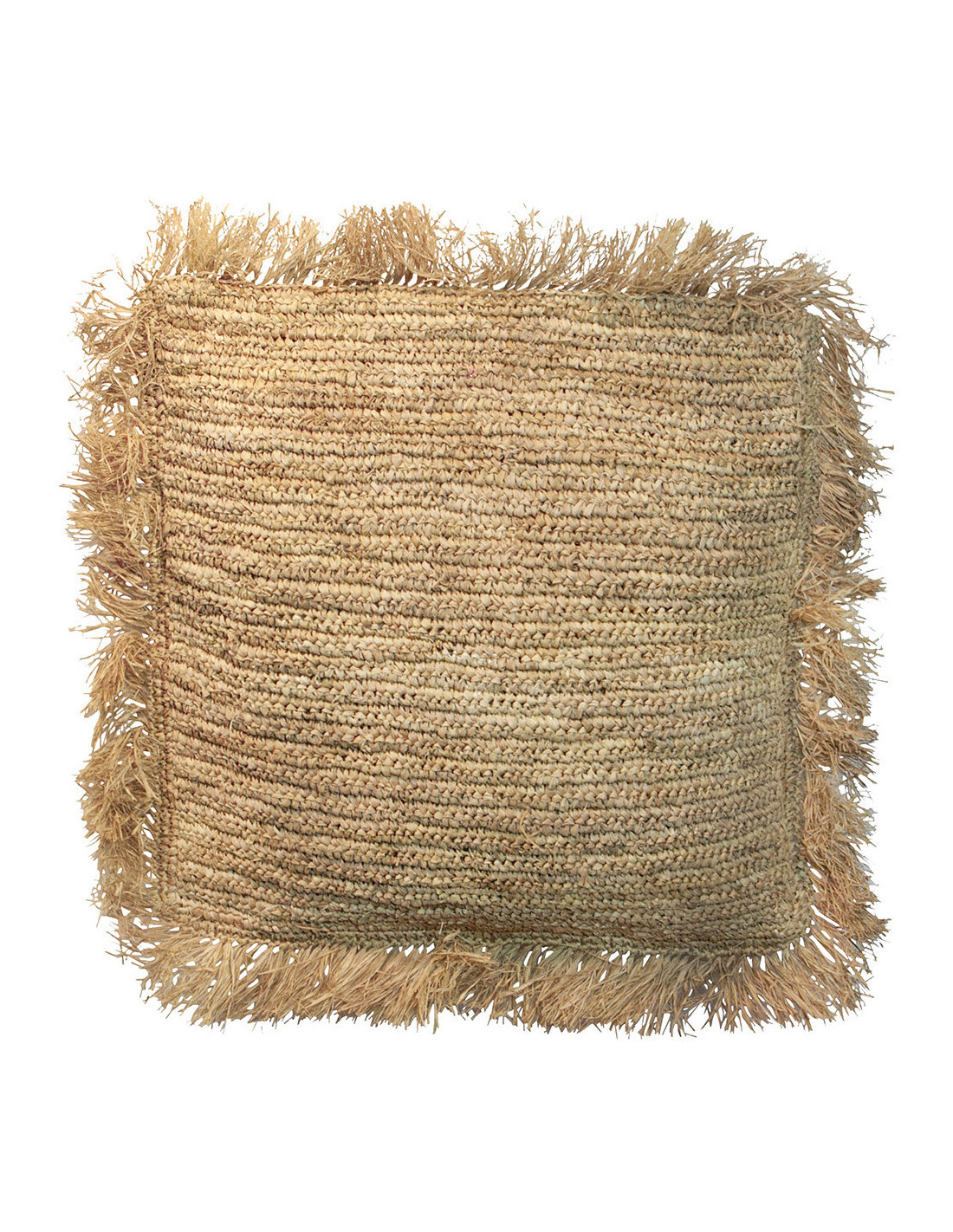 Housse de coussin XL Carrée 60x60 en Raphia Naturel avec franges The Raffia Square
