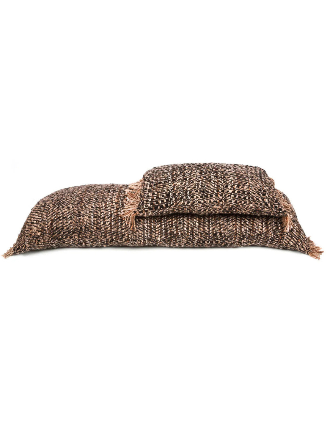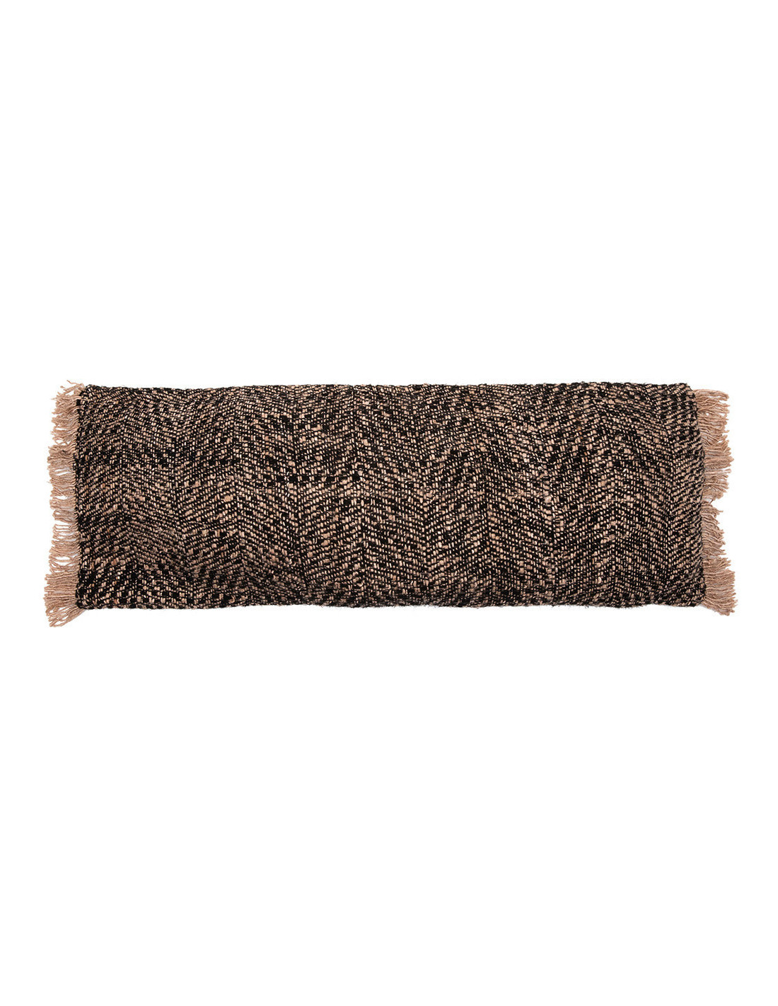 Housse de coussin XL Rectangulaire 100x35 en Coton Noir Cuivre avec franges The Oh My Gee