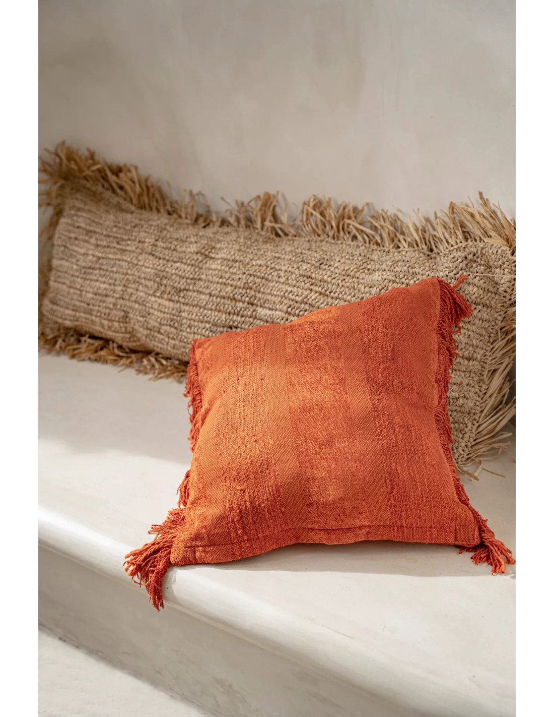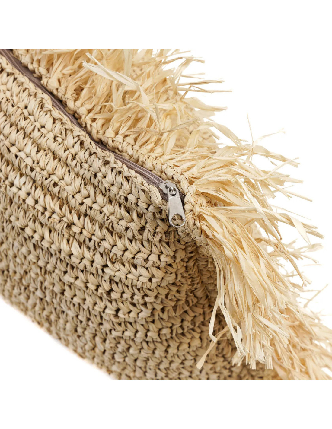 Housse de coussin XL Rectangulaire 100x35 en Raphia Naturel avec franges The Raffia Rectangular