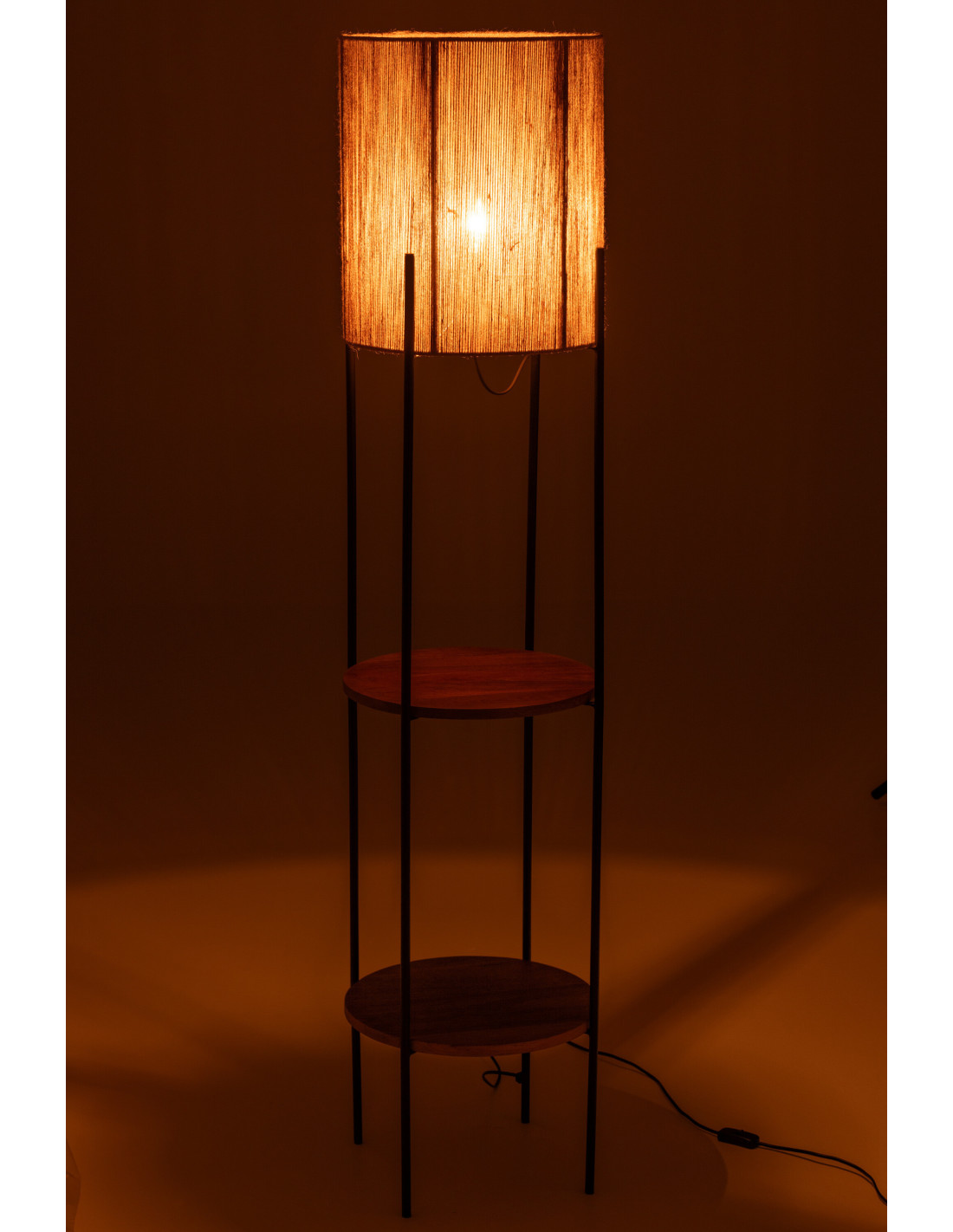Lampadaire original avec 2 étagères Hauteur 160 cm en Bois de manguier Jute Naturel Métal Noir Mangu